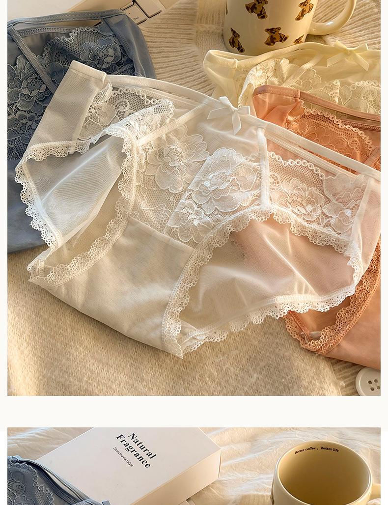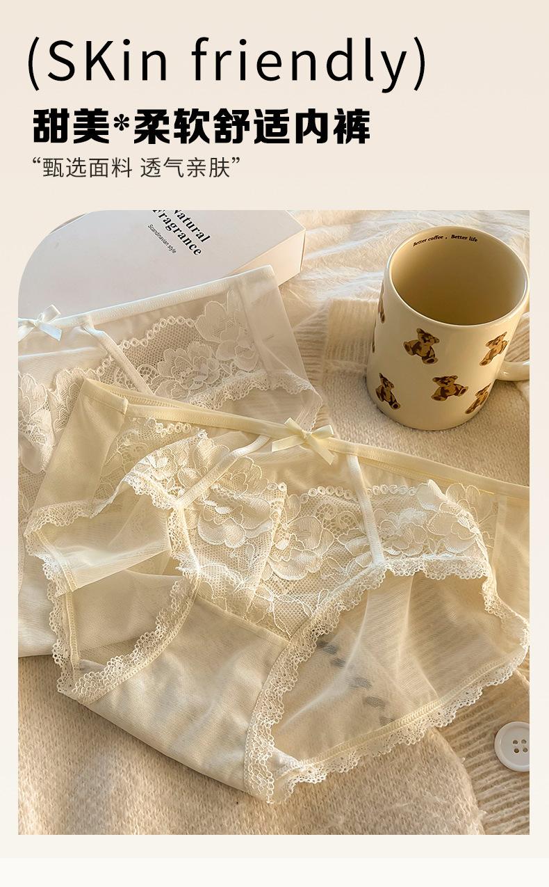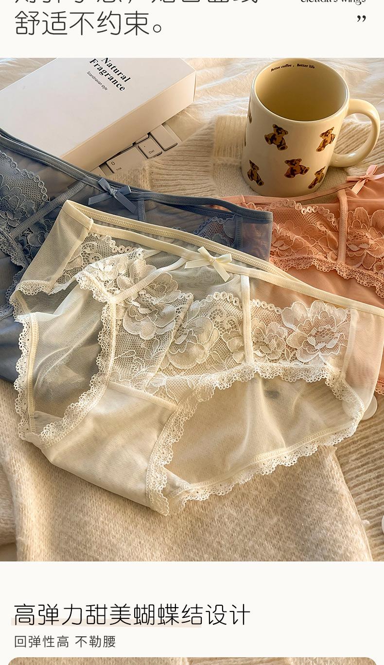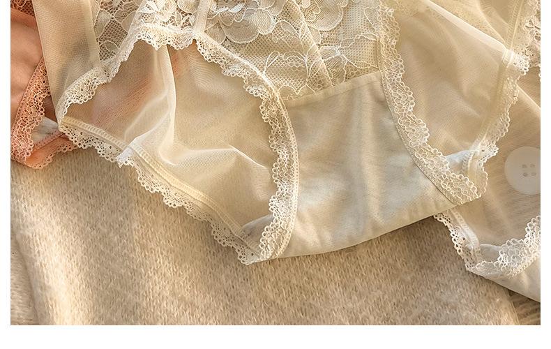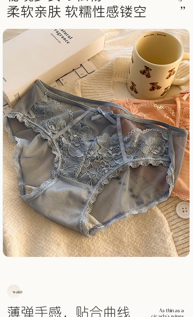 Ropa interior de encaje francés para mujer Ropa interior de algodón puro para mujer Entrepierna de algodón antibacteriano Cintura media baja Sexy Deseo puro talla grande Venta al por mayor para mujer