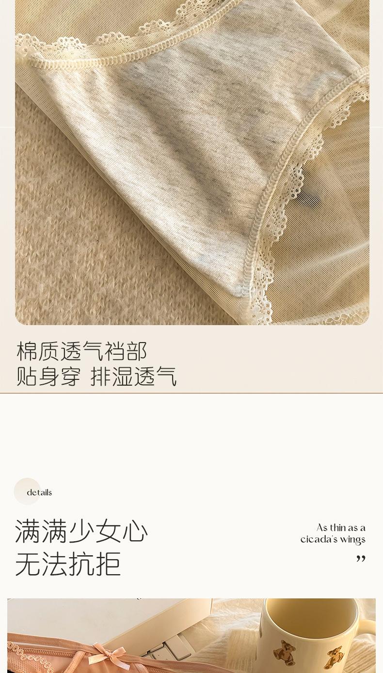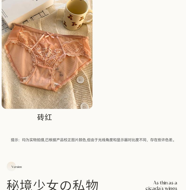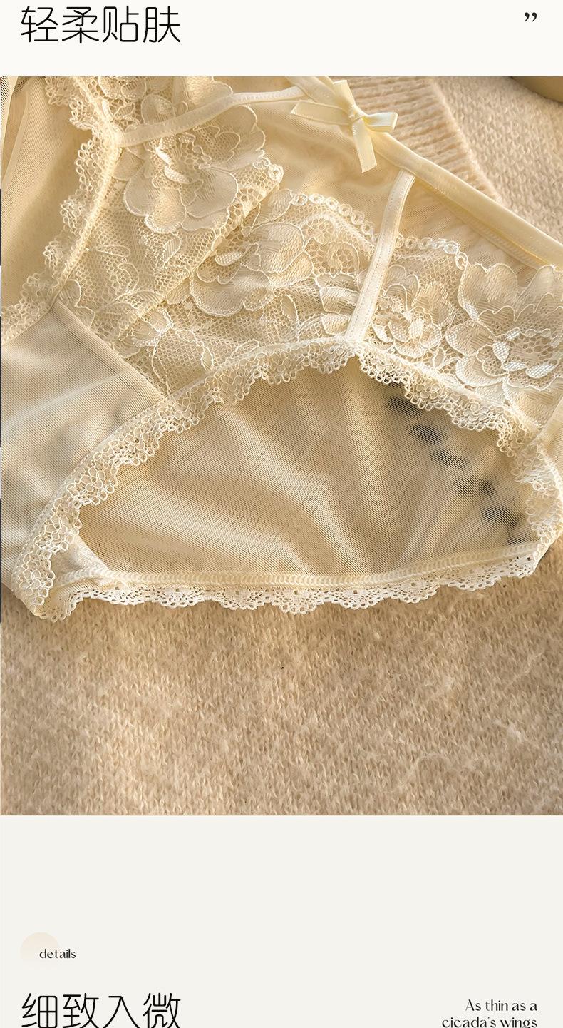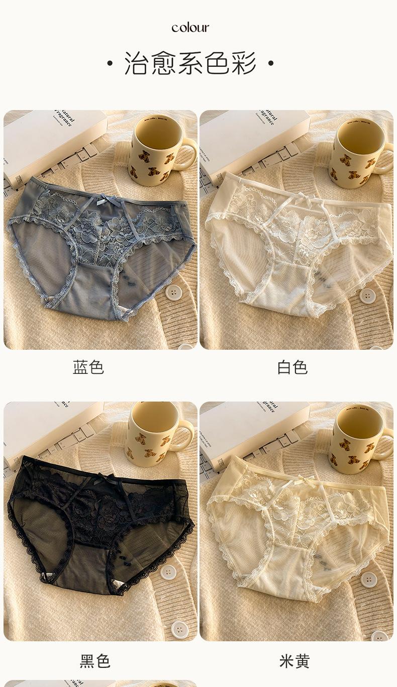 Ropa interior de encaje francés para mujer Ropa interior de algodón puro para mujer Entrepierna de algodón antibacteriano Cintura media baja Sexy Deseo puro talla grande Venta al por mayor para mujer
