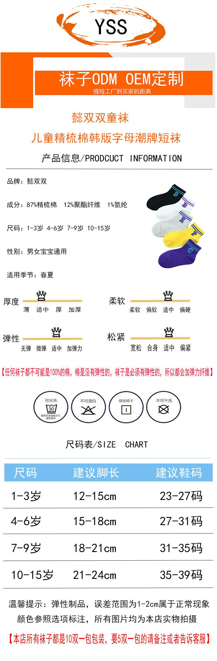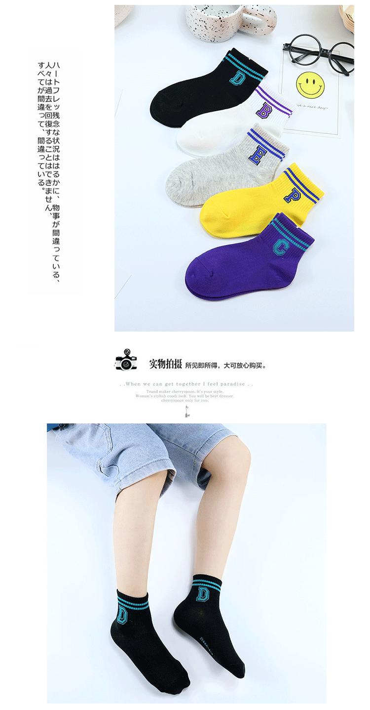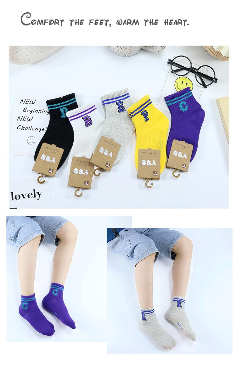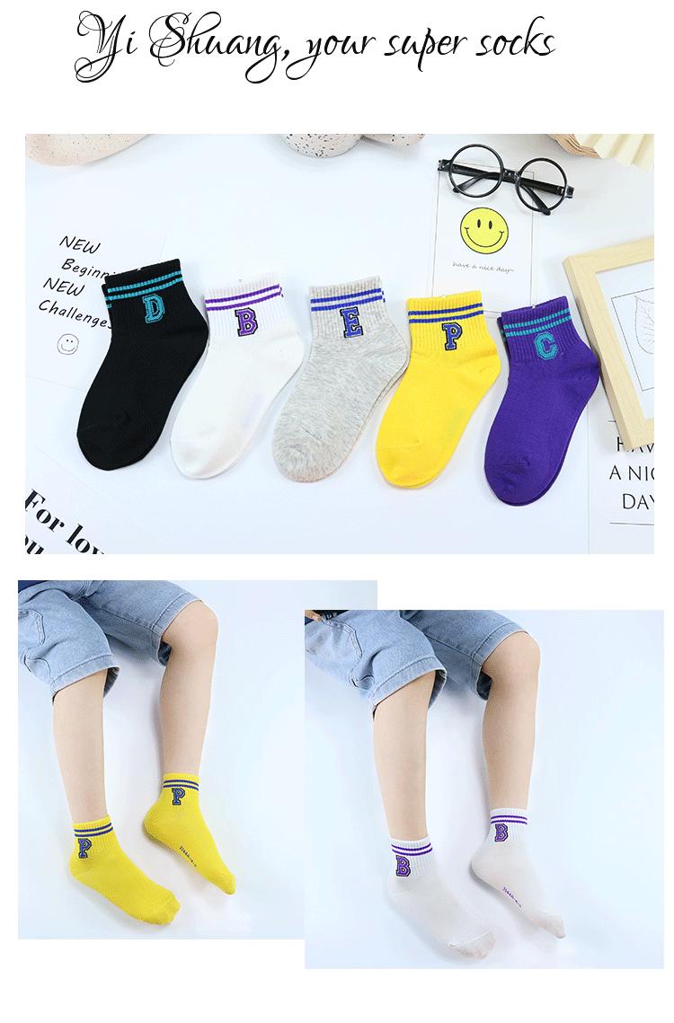 Par de calcetines para niños Yi, primavera y verano, nuevos calcetines cortos con letras de estilo coreano, calcetines de moda urbana, calcetines deportivos de algodón peinado para niños.