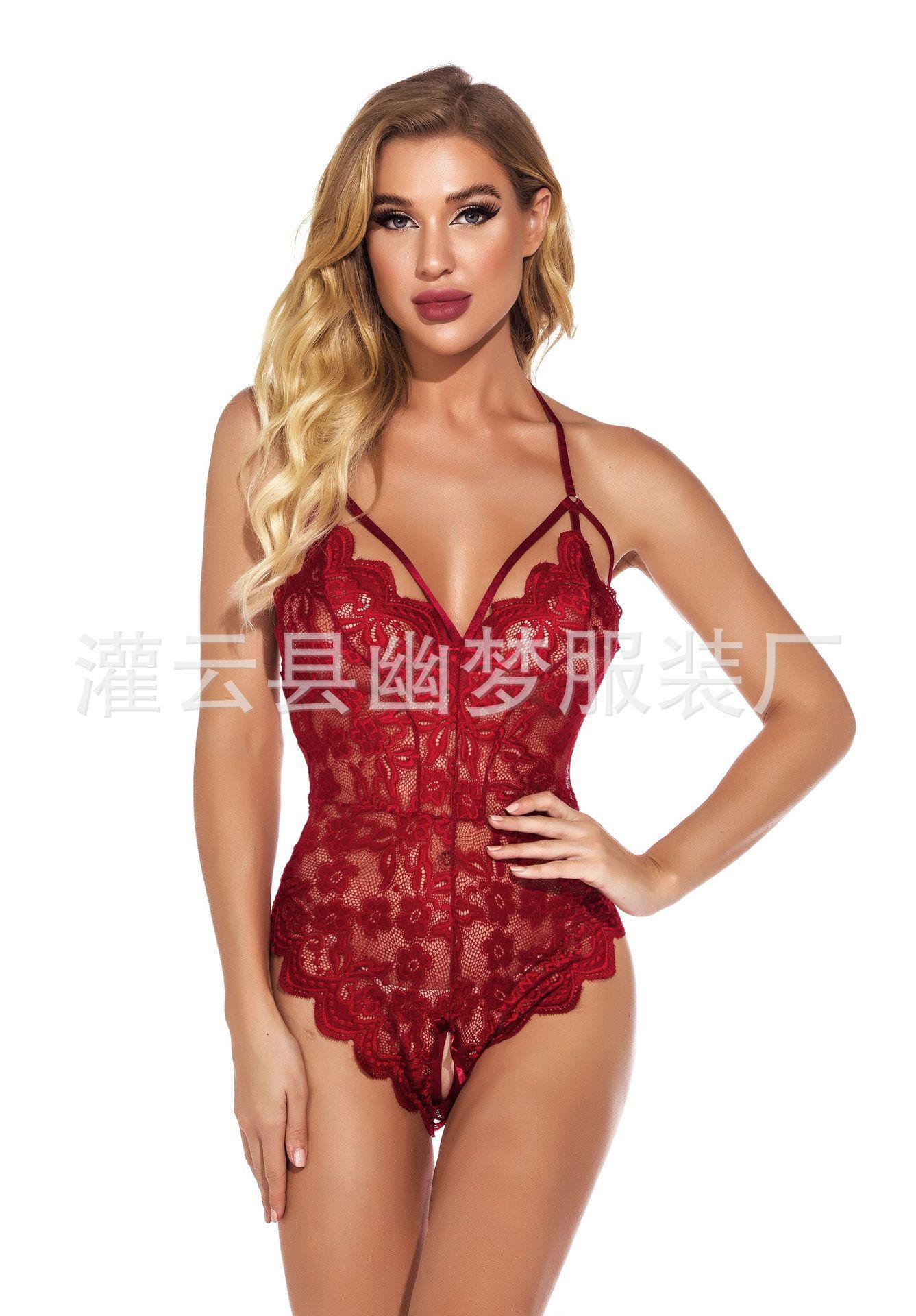 Compra Lencería Sexy Encaje Tentación Entrepierna Abierta Hueco Sexy Mono Femenino Caliente Traje Uniforme Dropshipping Venta al por mayor al por mayor en Joom.pro