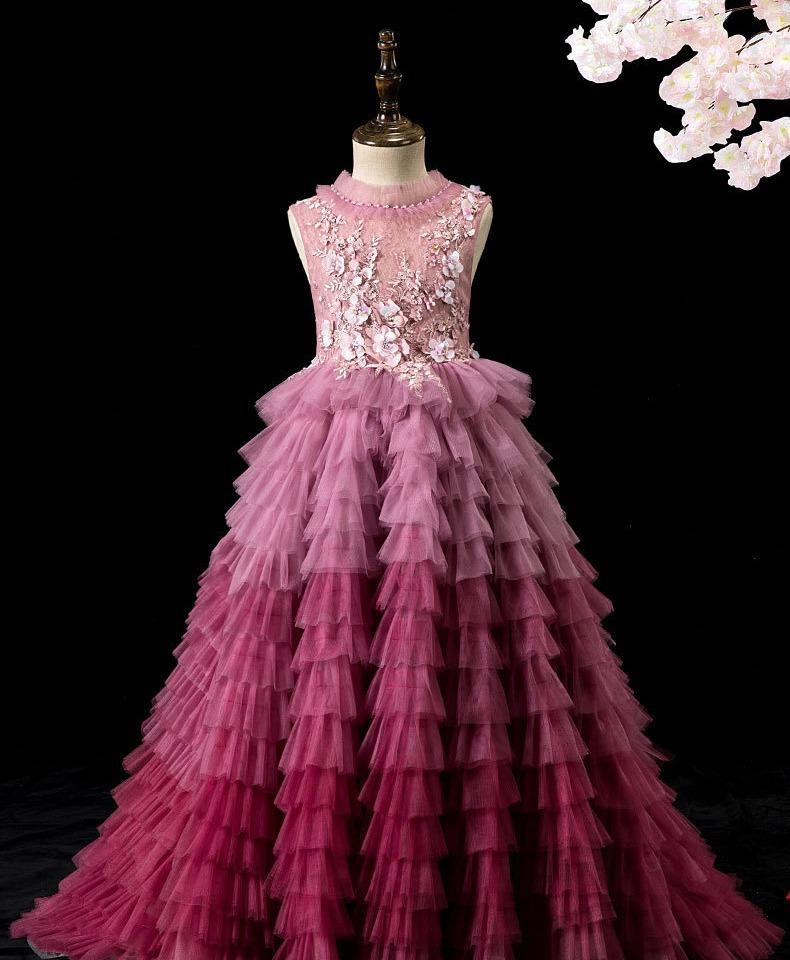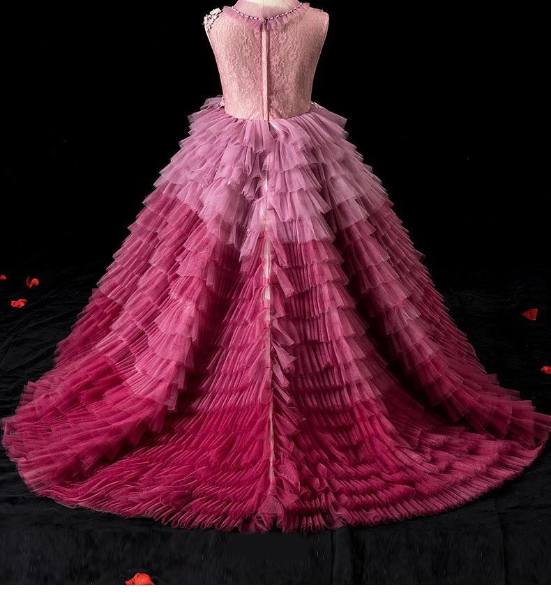 Vestido de cola de presentadora de pasarela infantil, vestido de noche para banquete de cumpleaños de niña, vestido de princesa, vestido de actuación de piano para niña pequeña