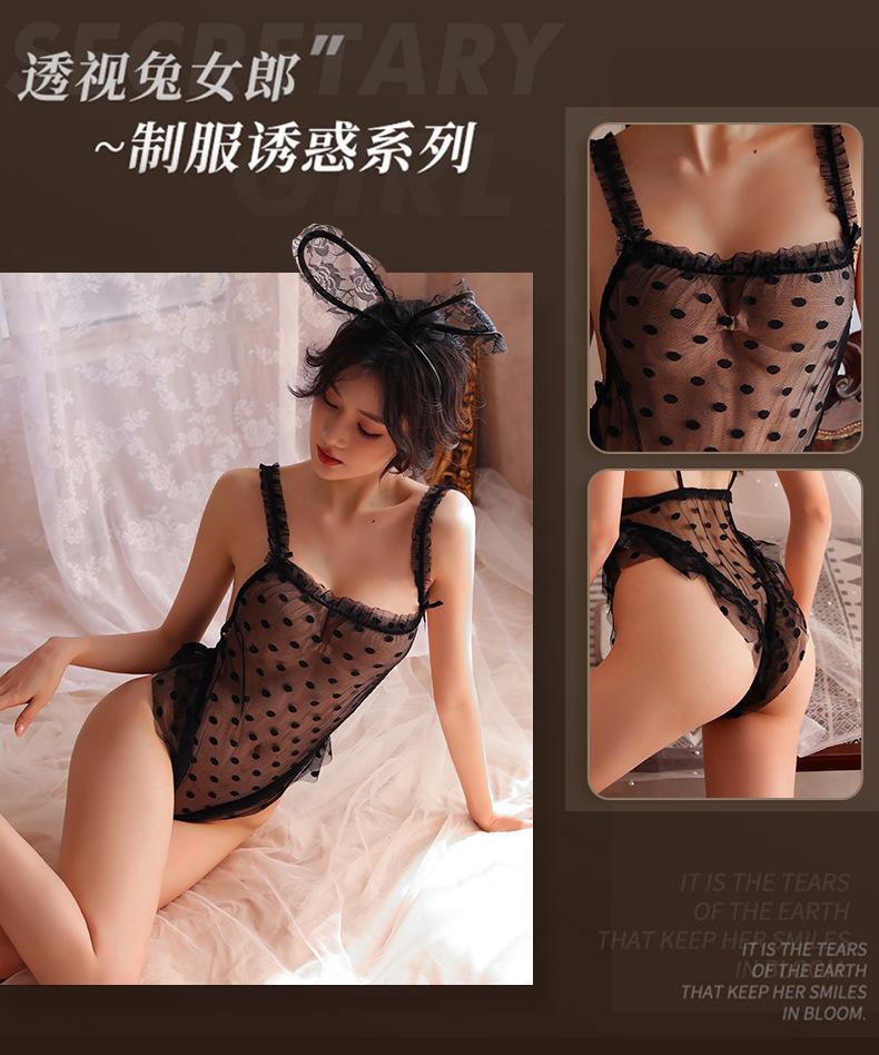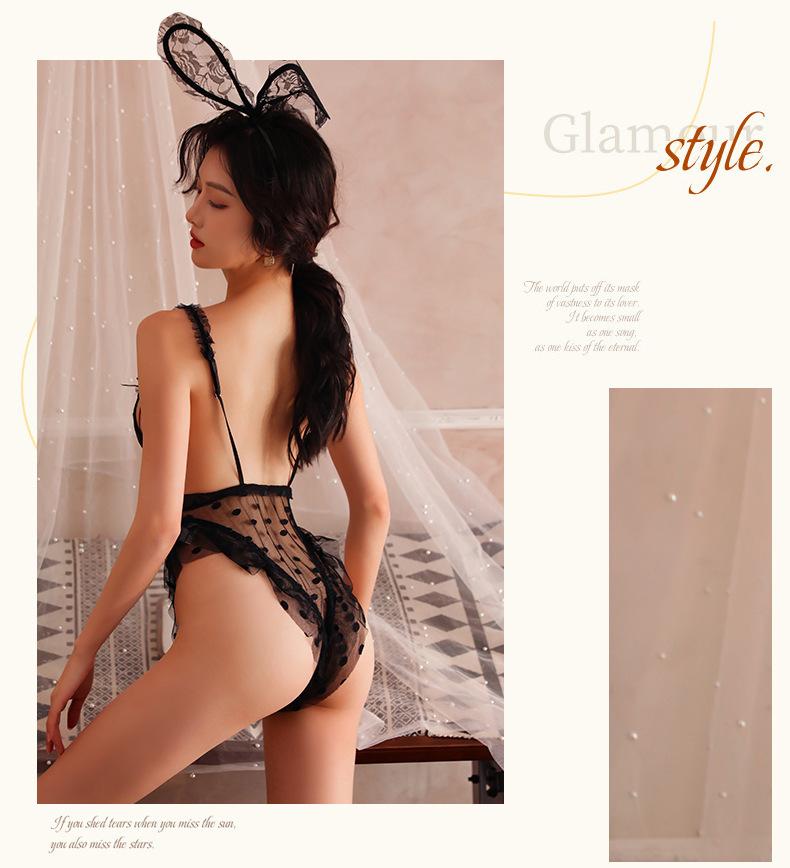 Ropa Interior Sexy Encaje Sexy Traje de Conejita Hebilla Oculta Perspectiva Archivo Abierto Uniforme Tentación Pijama de una pieza 480