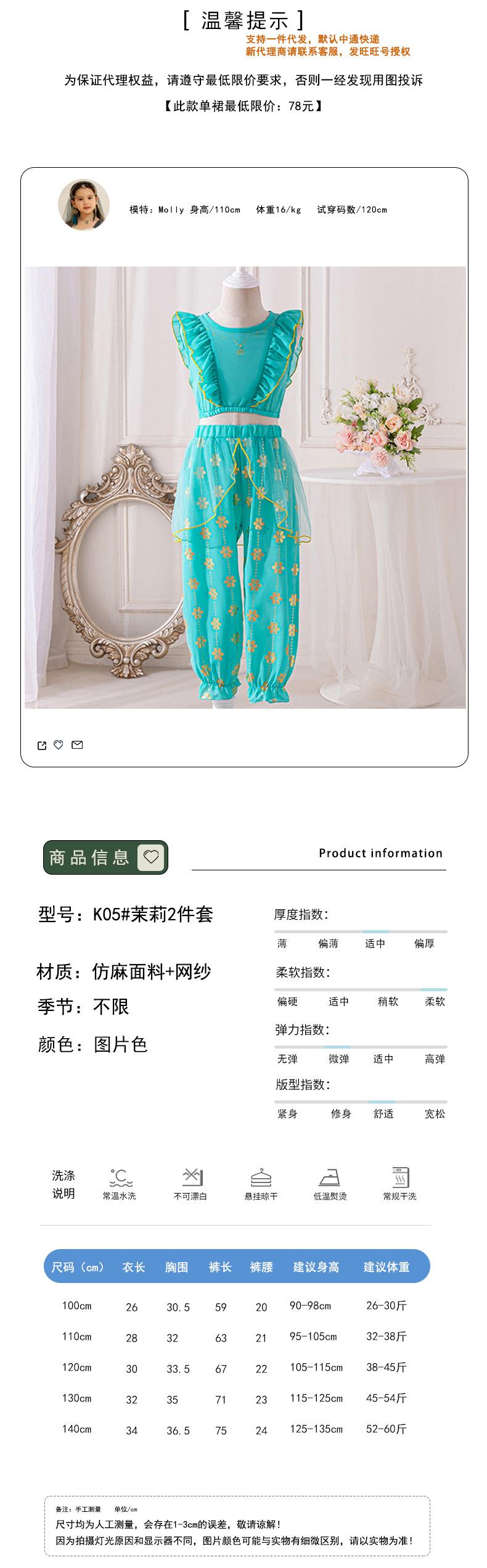 Halloween Niñas Aladdin Princesa Jasmine traje Vestido de Niñas Disfraz cosplay Cosplay