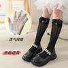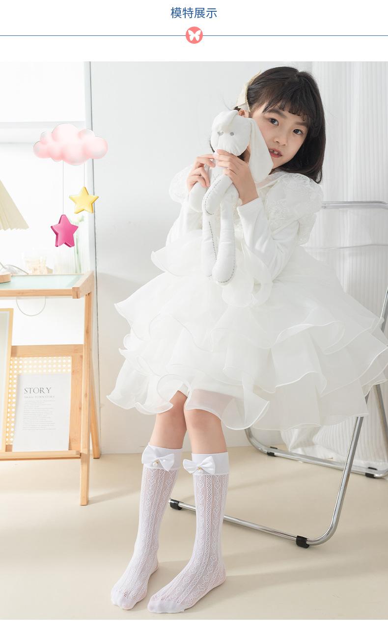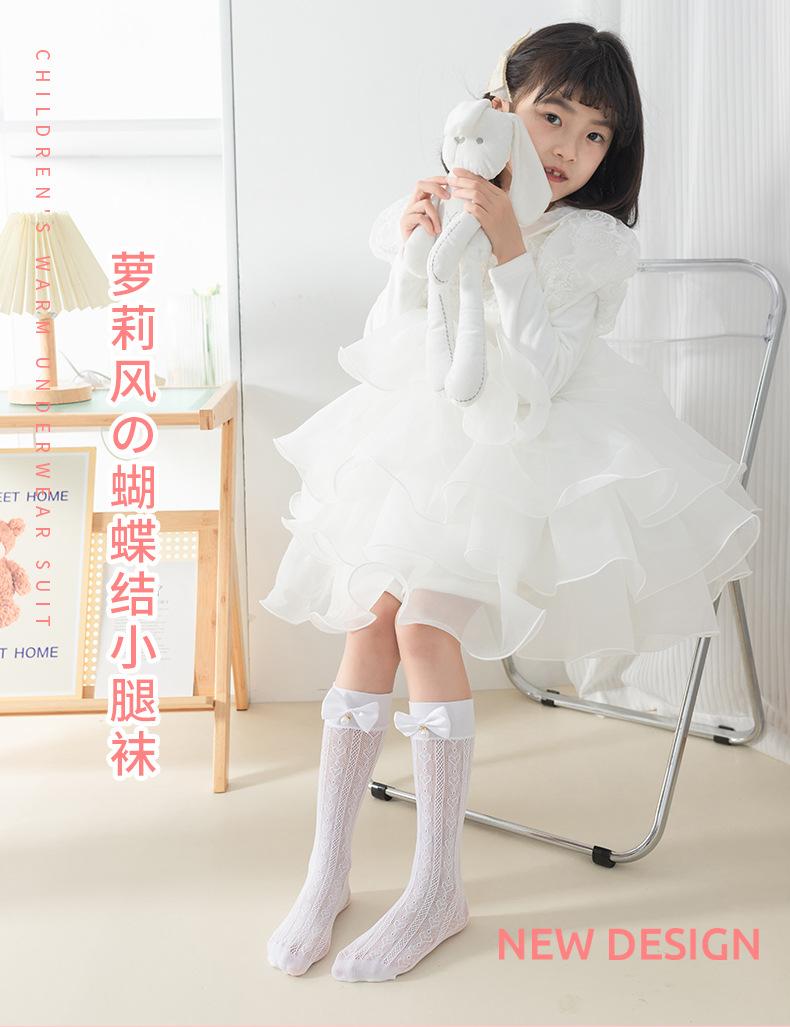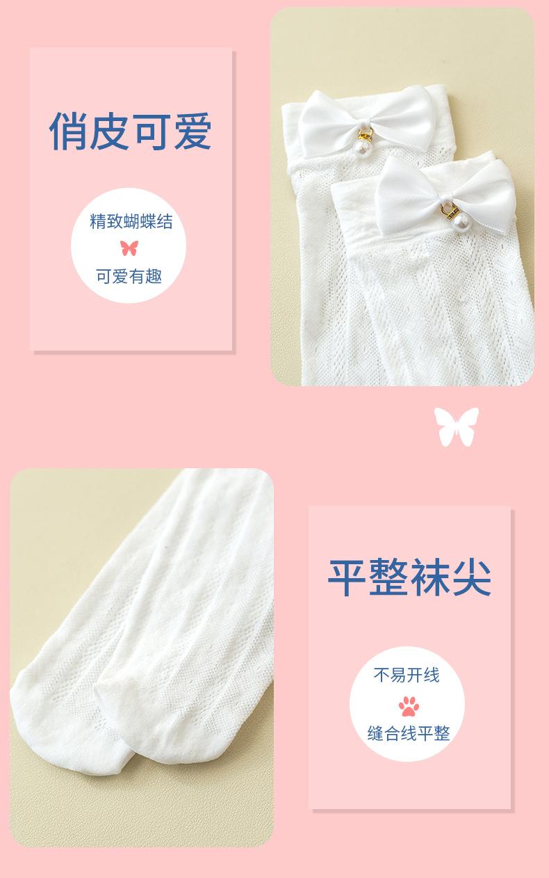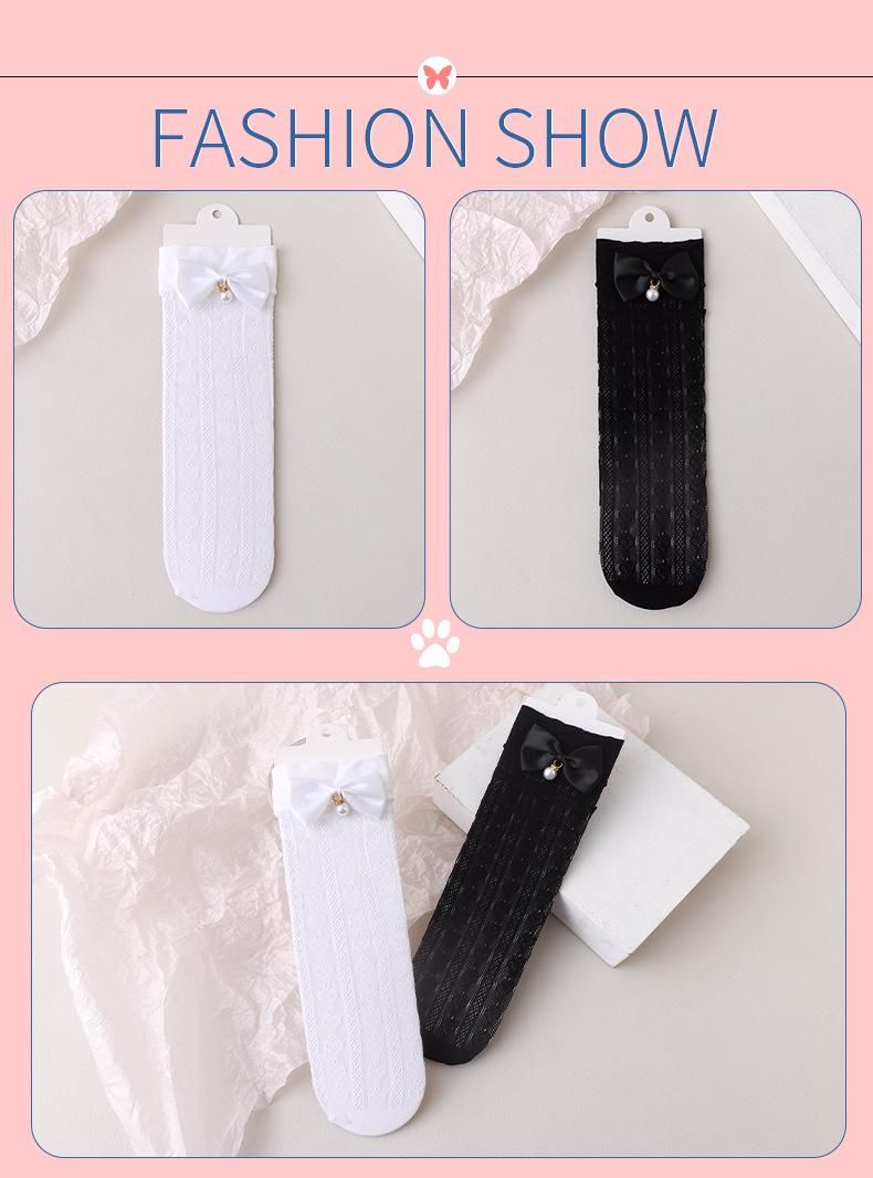 Verano Nuevo Calcetines de Malla de Corazón Fino con Cuentas y Lazo para Niños Calcetines de Media Caña Calcetines Largos hasta la Pantorrilla para Niñas