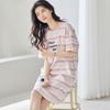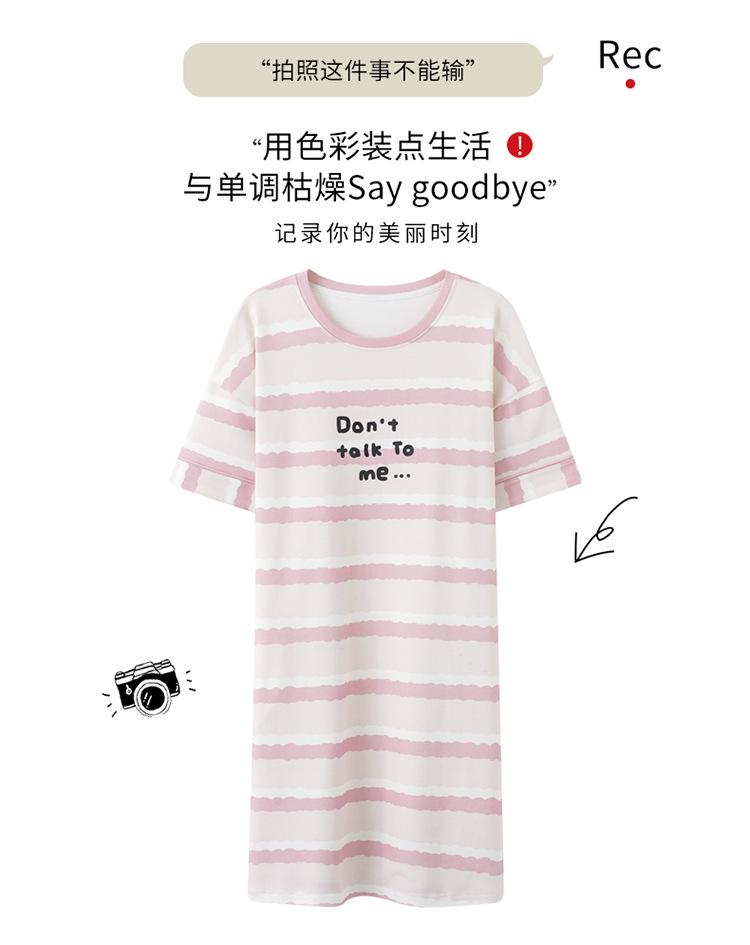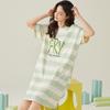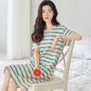 Camisón de verano de algodón puro para mujer, cuello redondo, manga corta, holgado, a rayas, midi, 100% algodón, ropa de casa para mujer