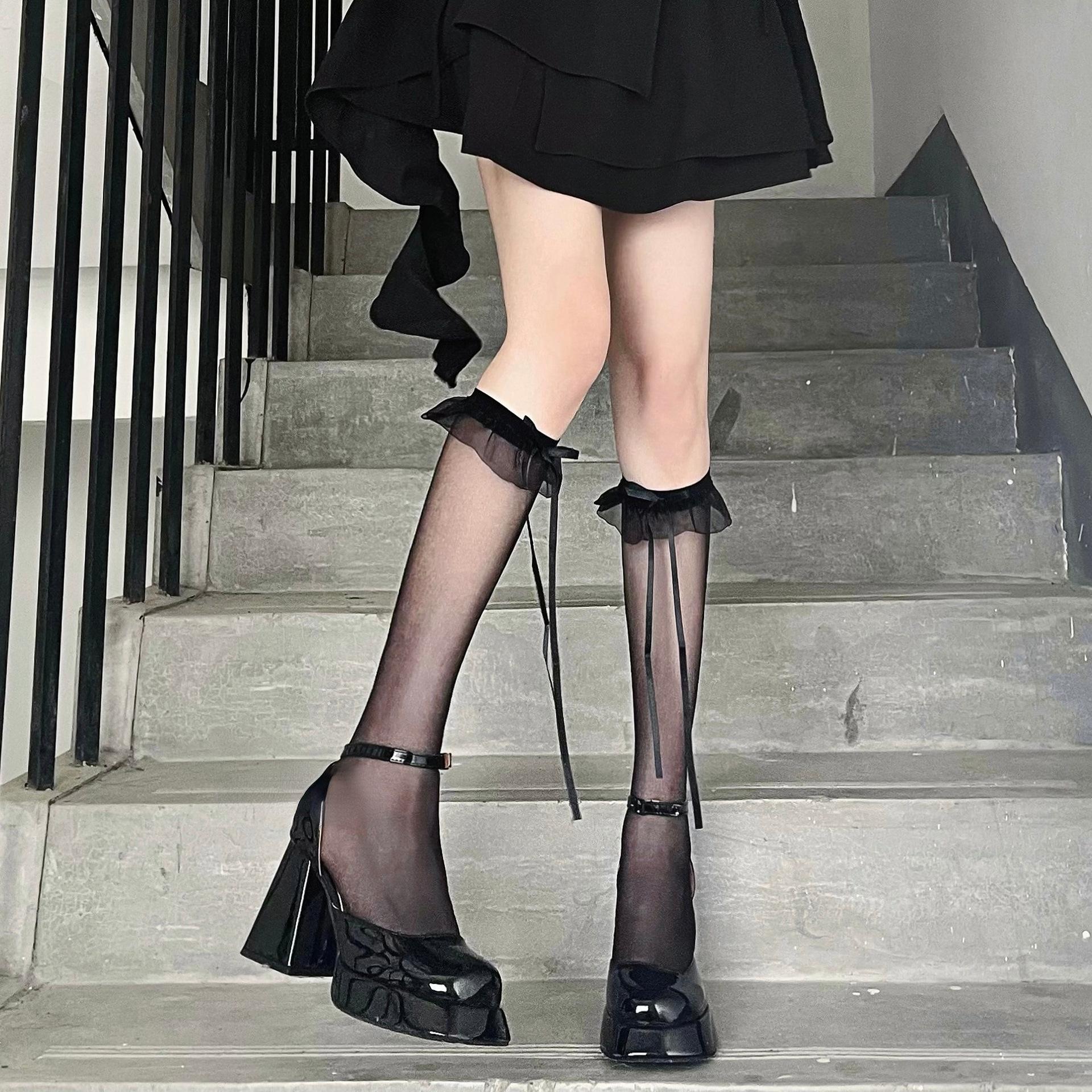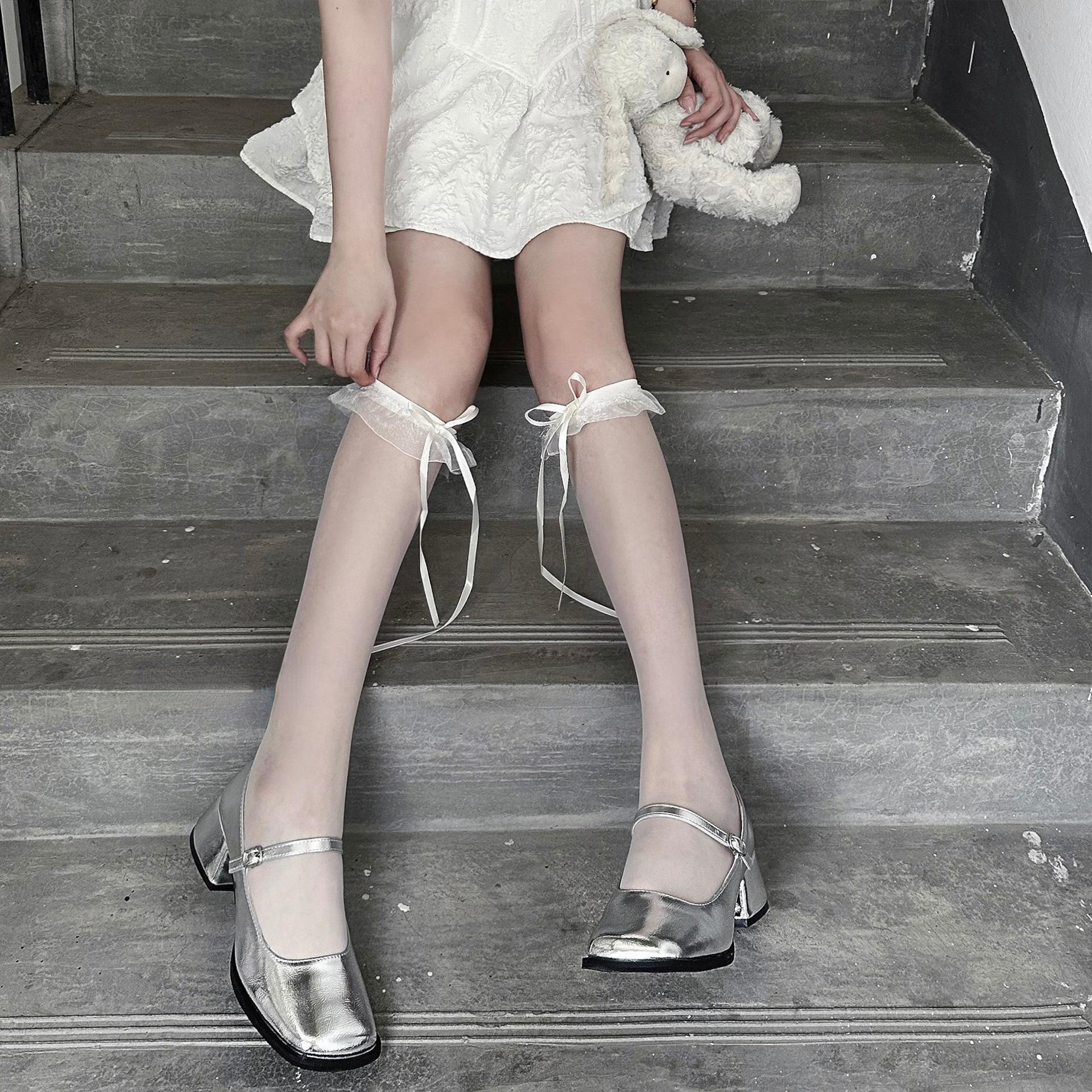 Calcetines de media caña de encaje Lolita de Deseo Puro Estilo Japonés Cinta Dulces Medias Lazo de Encaje Calcetines de Tubo Medio Calcetines Jk