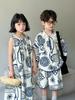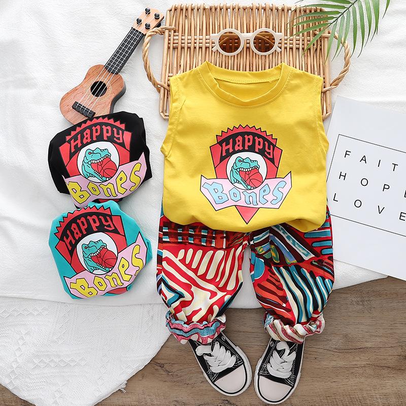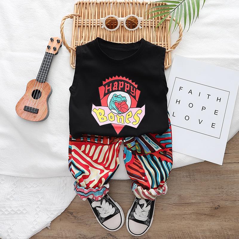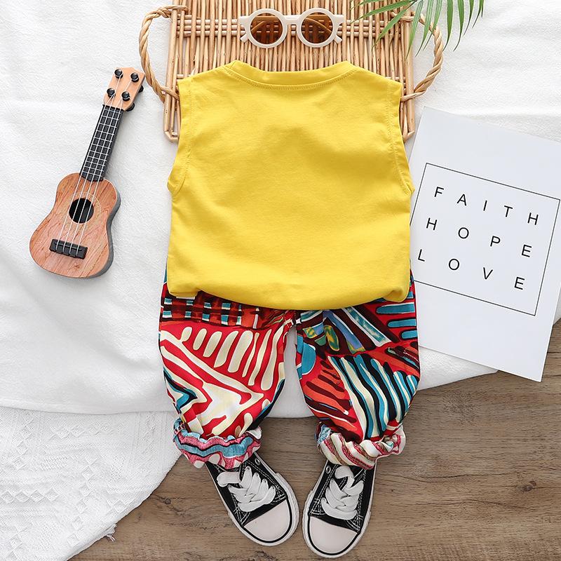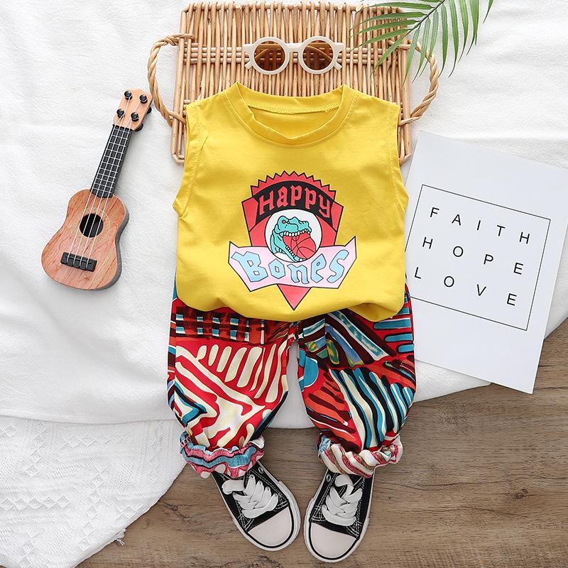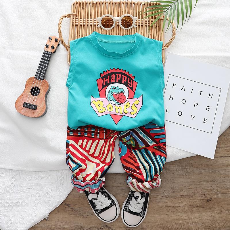 Traje de chaleco de verano nuevo para niños, conjunto informal de dos piezas para niños y niñas, traje de manga corta con dibujos animados de estilo coreano