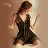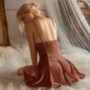 Camisón sexy de terciopelo dorado con tirantes para mujer, falda corta de encaje para primavera y otoño e invierno, conjunto opcional para el hogar, bata 12262