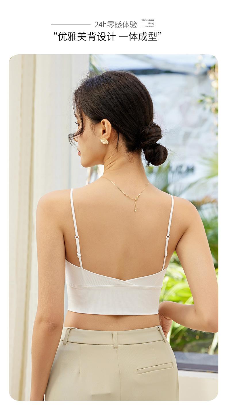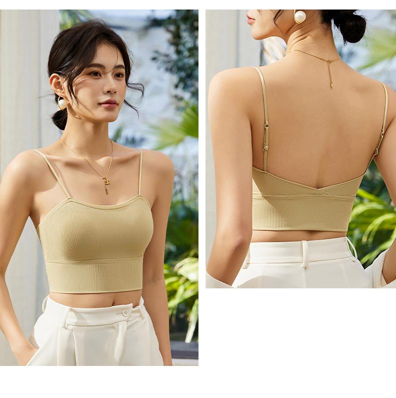 Camisola pequeña de verano para mujer, de seda fría, con almohadilla para el pecho, ropa interior de una pieza con espalda hermosa, prenda exterior básica, top de tubo