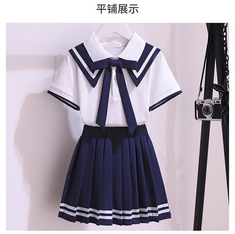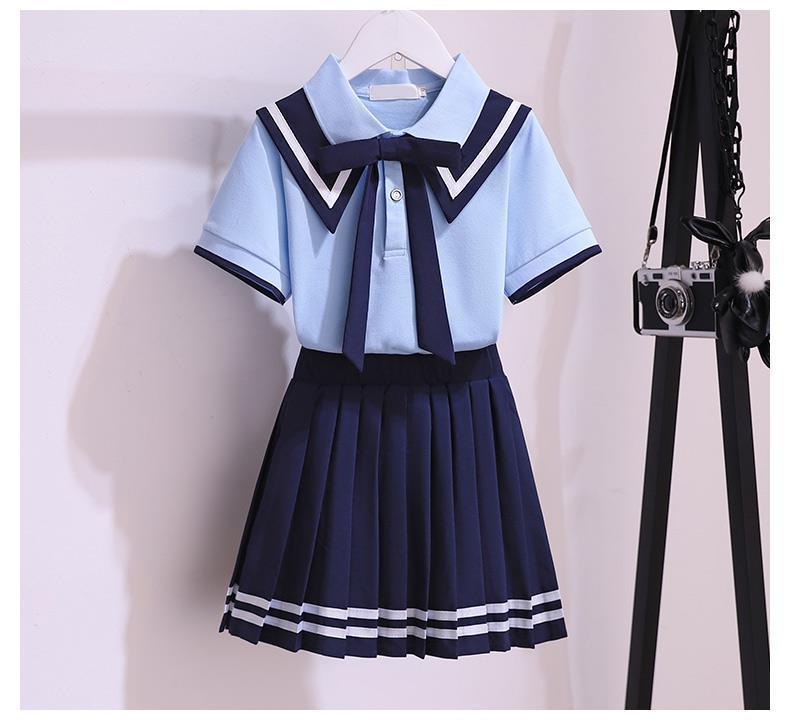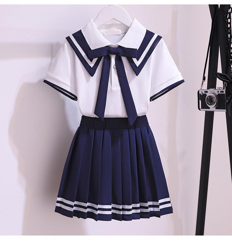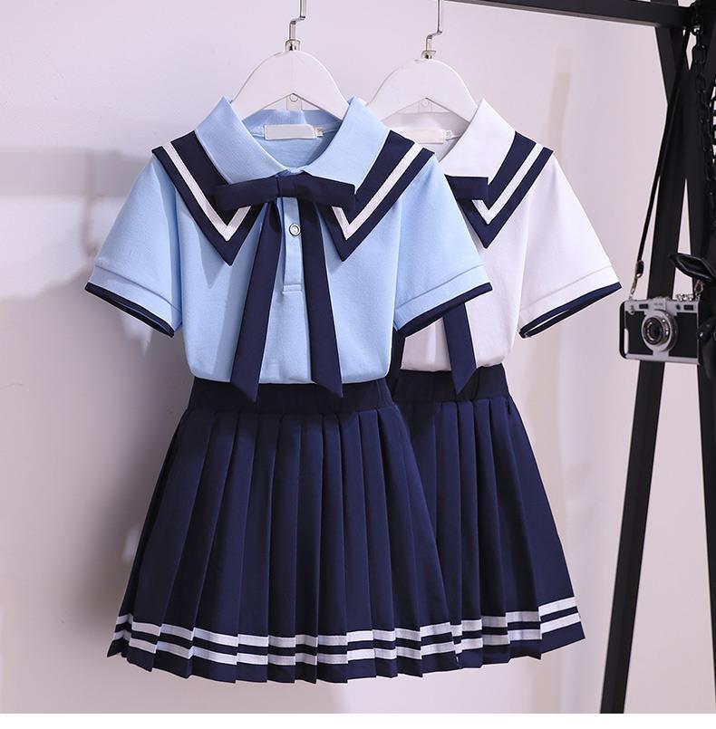 Uniforme JK para niñas, ropa de verano, ropa popular en Internet para niños, nuevo uniforme escolar de estilo occidental para niños, falda plisada de estilo universitario, conjunto de dos piezas