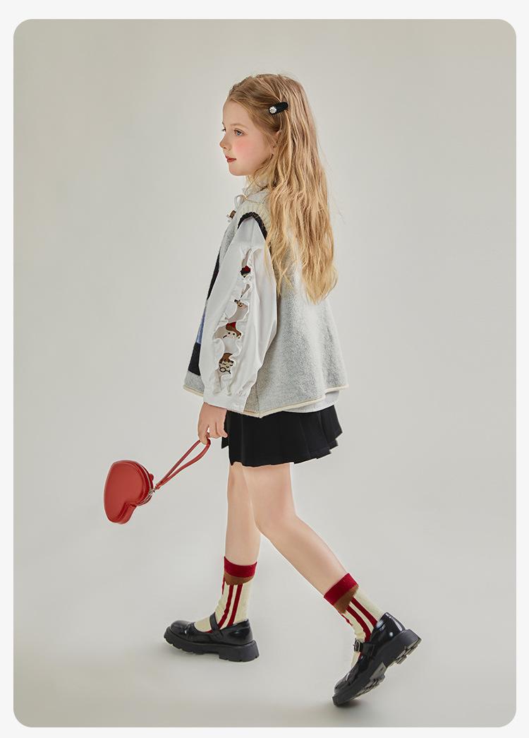Traje de niña estilo primavera y otoño 2024 nuevo estilo occidental chaleco de moda camisa falda de tres piezas ropa de primavera para niños