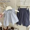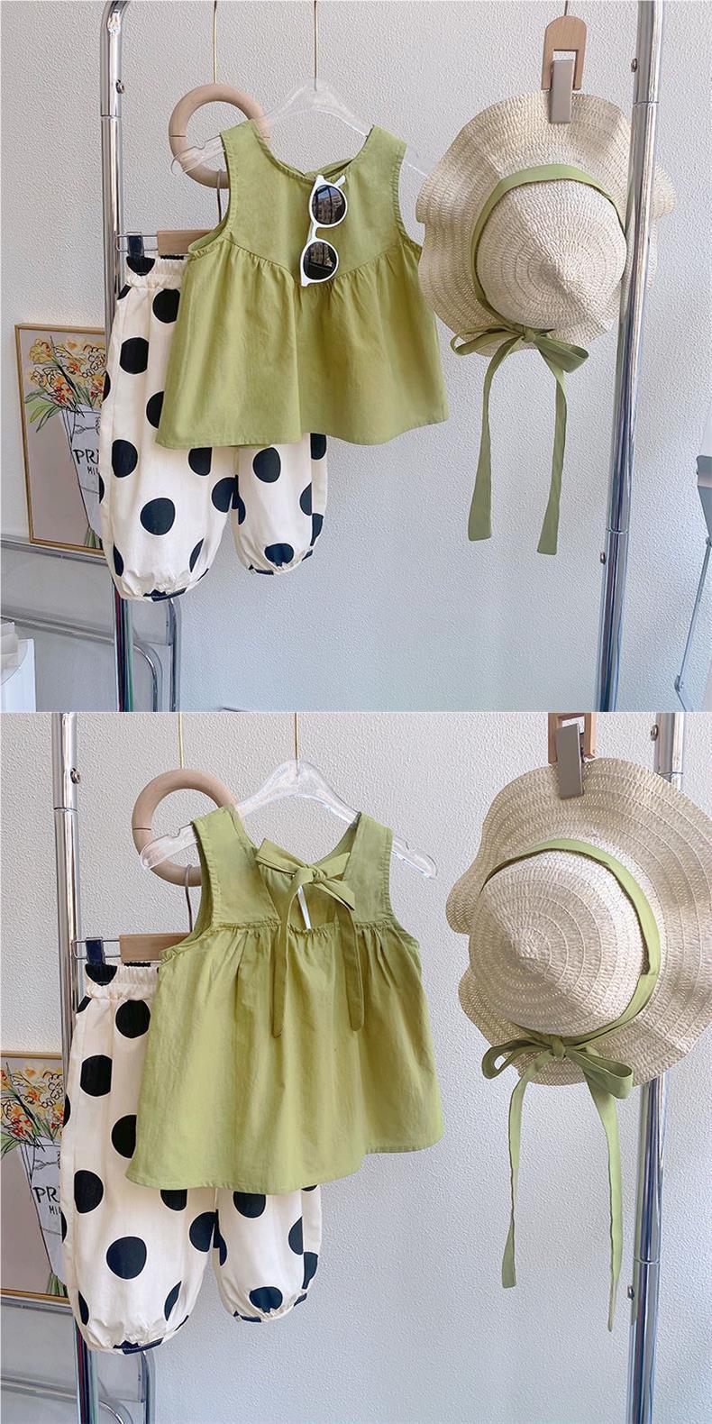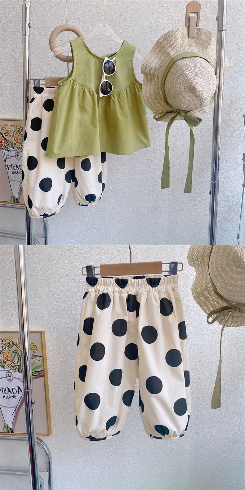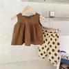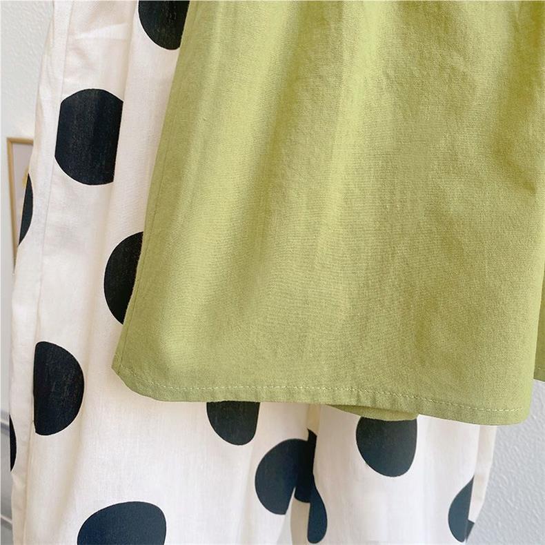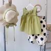 Traje de verano para niñas Bebé Elegante Infantil Personalizado Moderno Marca Coreana Chaleco Camisa de Muñeca Polo Lunares Recortado Bloomers