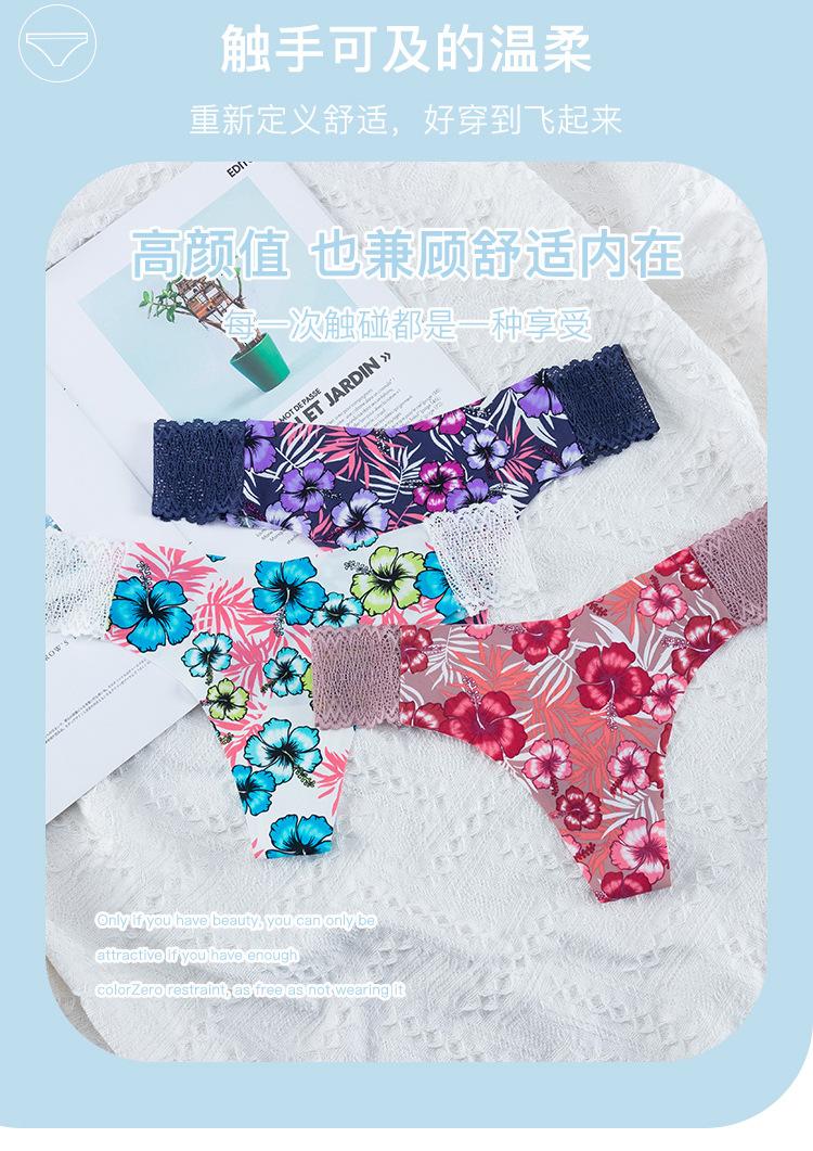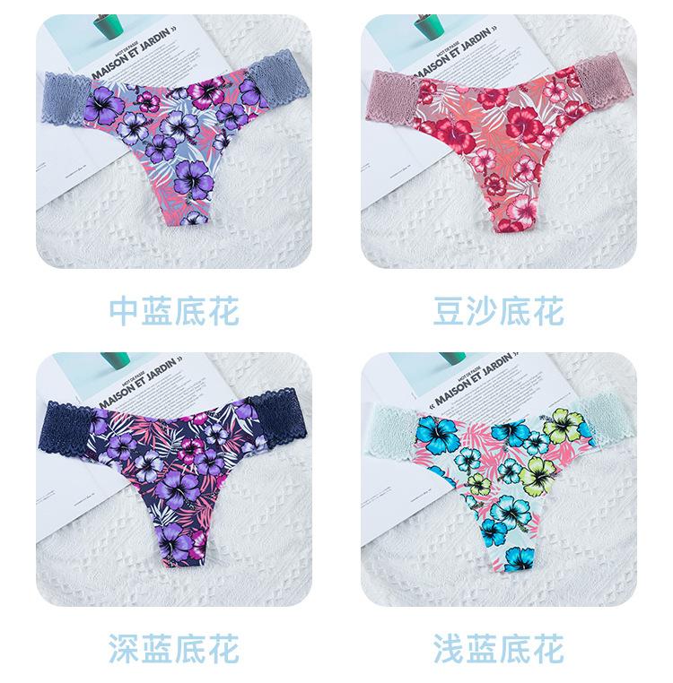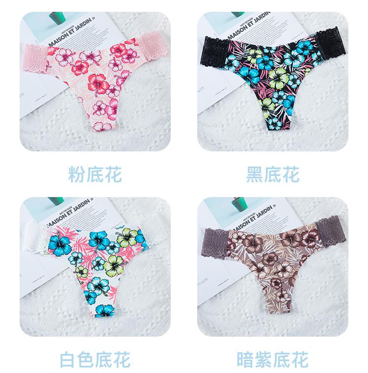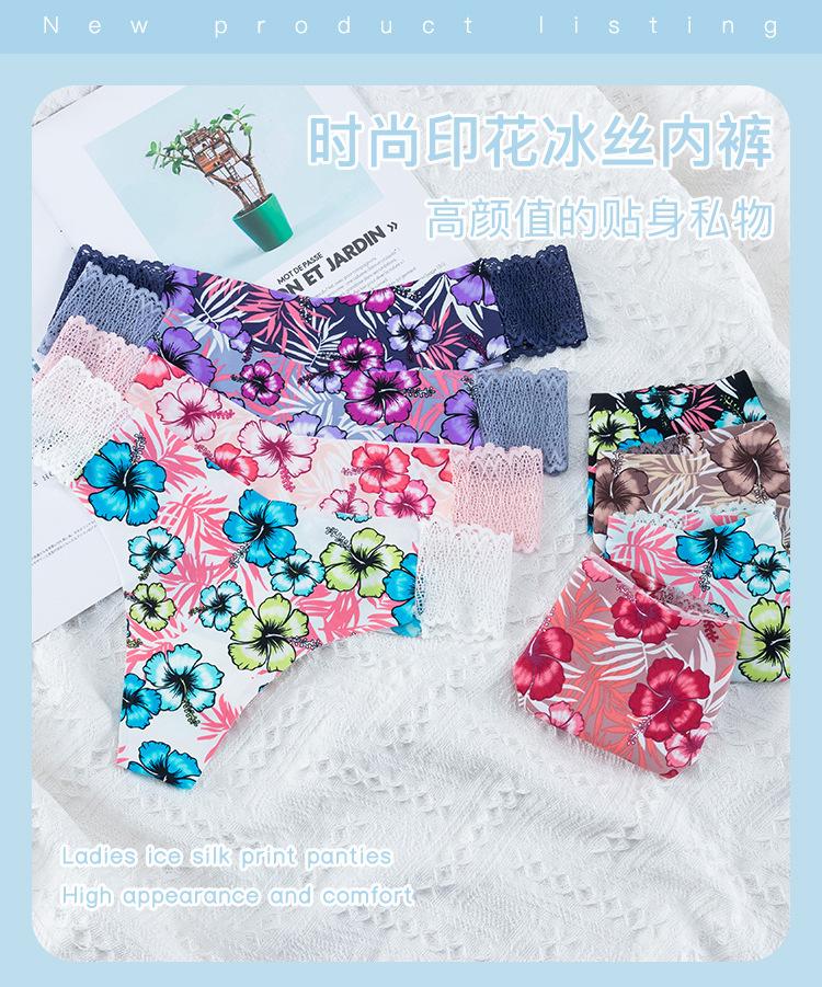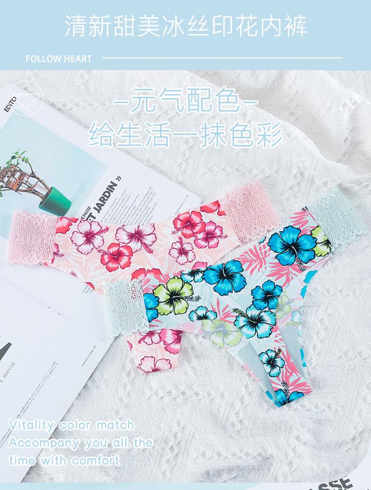 Tanga sexy con estampado transfronterizo, de seda helada, sin costuras, de algodón, ligero, transpirable e invisible.