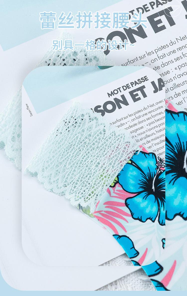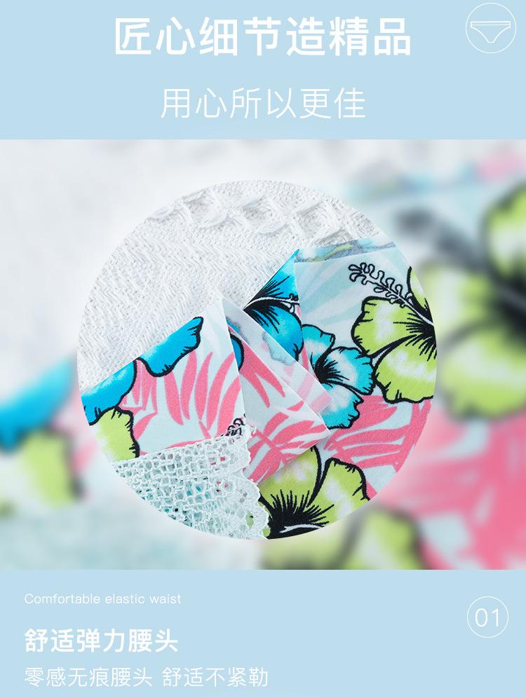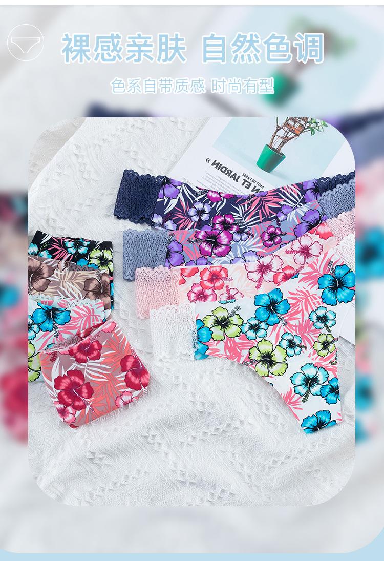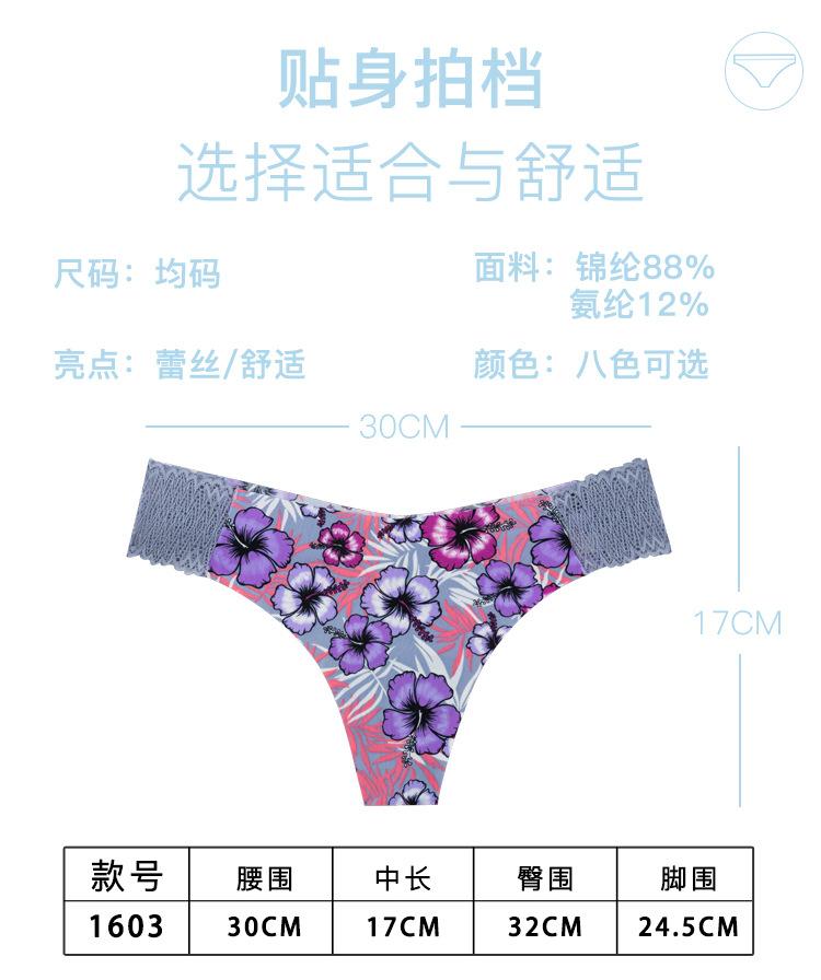 Tanga sexy con estampado transfronterizo, de seda helada, sin costuras, de algodón, ligero, transpirable e invisible.