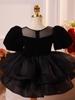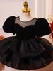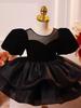 Vestido infantil negro estilo francés manga abullonada vestido de princesa verano niñas pasarela anfitrión presentación de piano falda de cancán