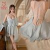 Pijama sexy de talla grande para mujer, falda halter, camisón de encaje, tentación, satén, 1671
