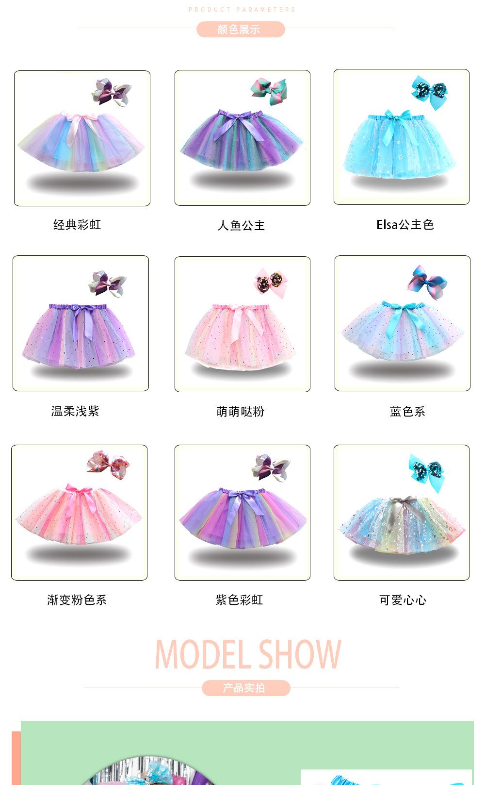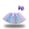 Falda tutú de malla arcoíris europea y americana para niñas, falda de princesa convexa de media longitud con tocado de lazo, tutú