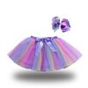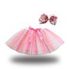 Falda tutú de malla arcoíris europea y americana para niños, falda de princesa de media longitud con tocado de lazo, vestido de bebé