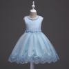 Vestido largo de malla de manga corta para niñas europeas y americanas, falda para niñas medianas y grandes, vestido de princesa de una pieza con borde cruzado, nuevo