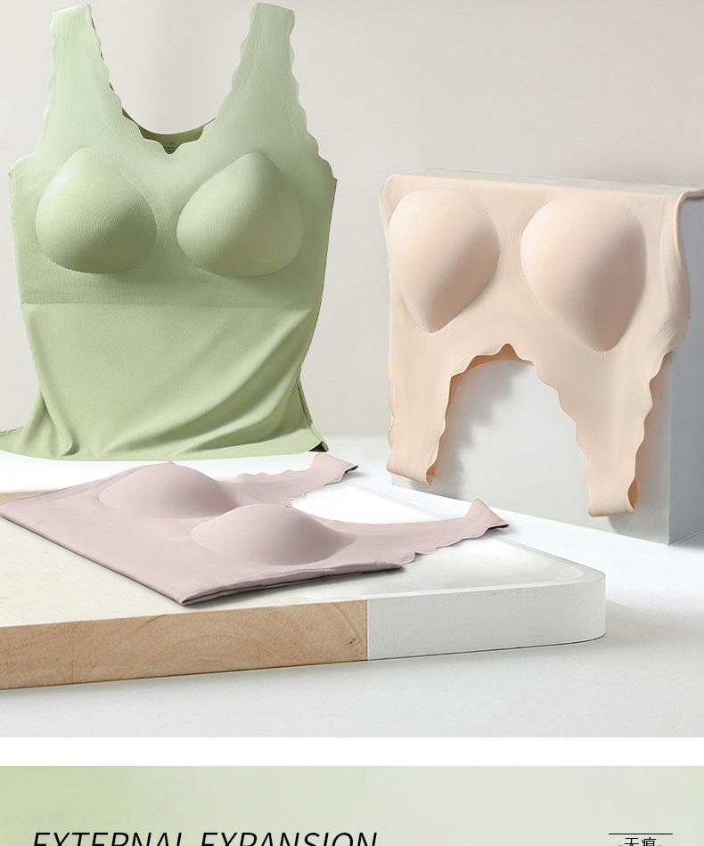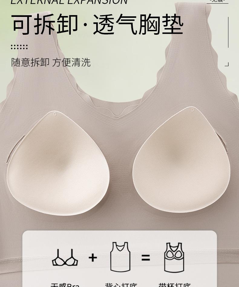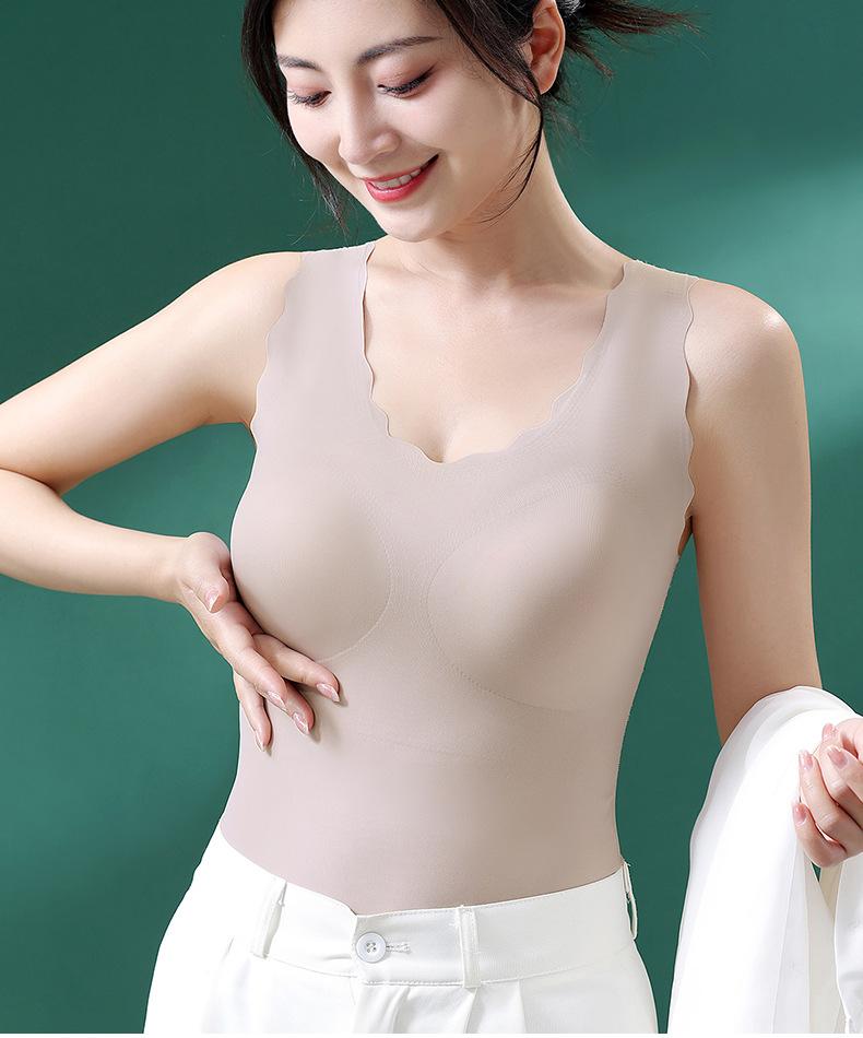 Chaleco sujetador sin costuras para mujer, novedad de verano de 2024, con cinturón y almohadilla para el pecho, de seda helada, sin costuras, con base de aro de acero y chaqueta fina.