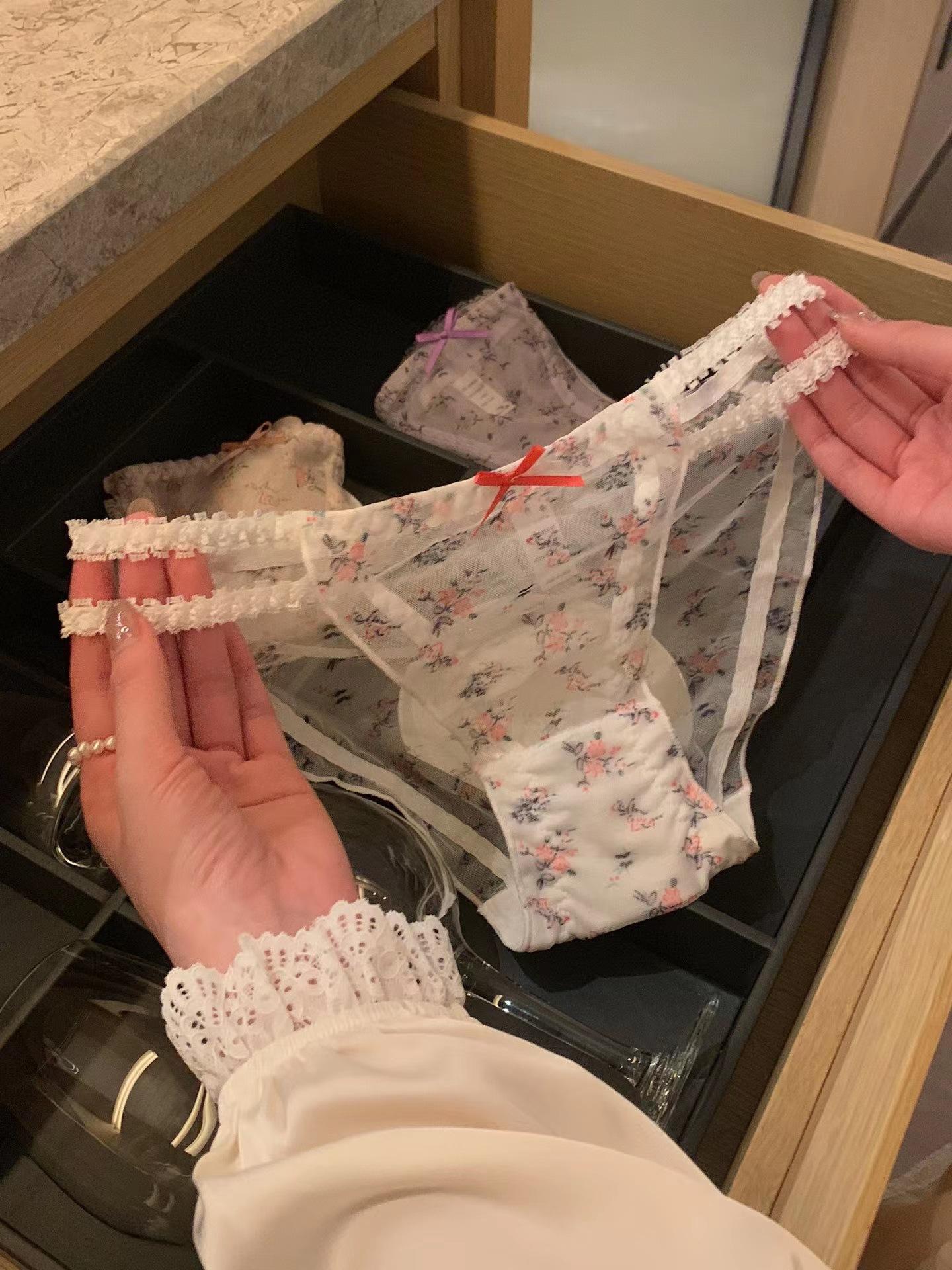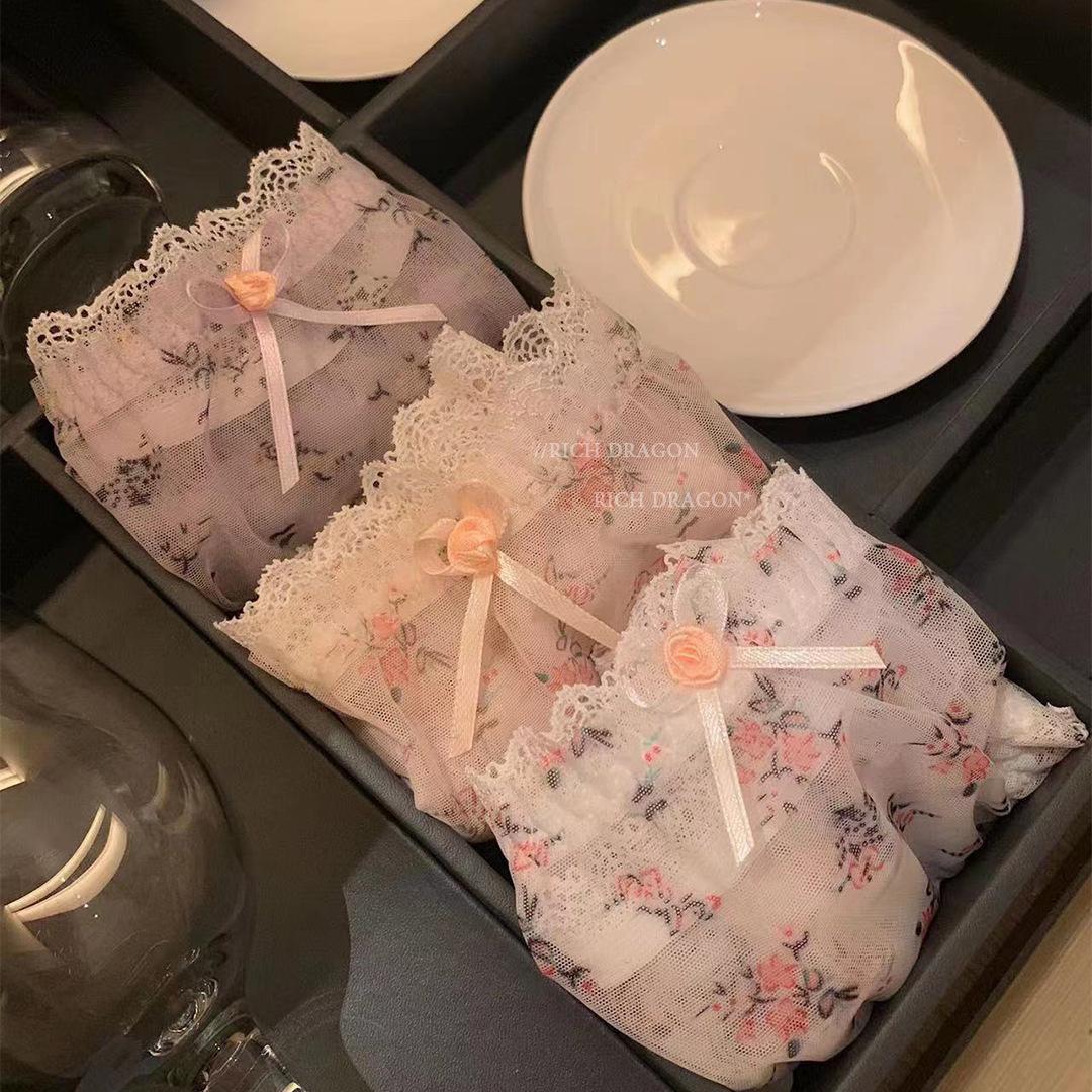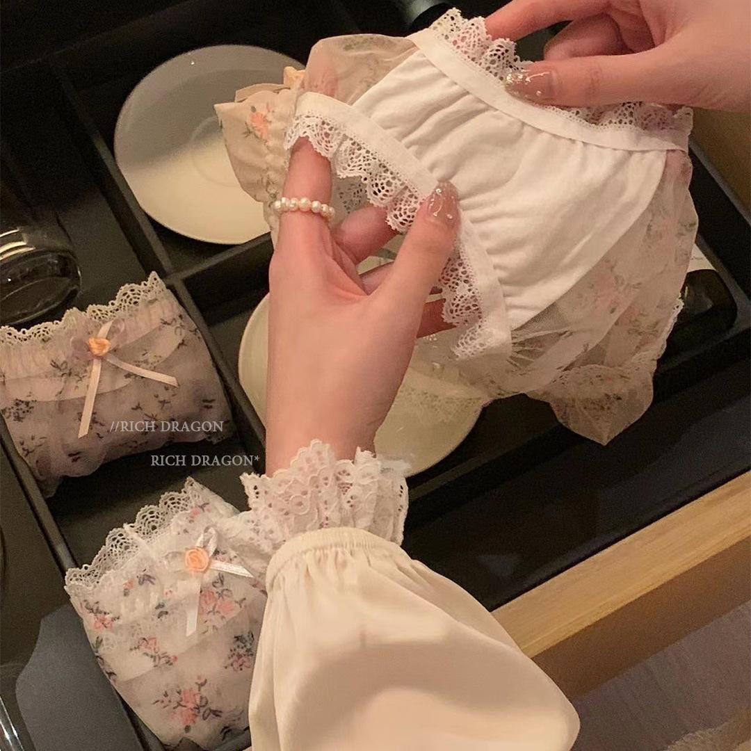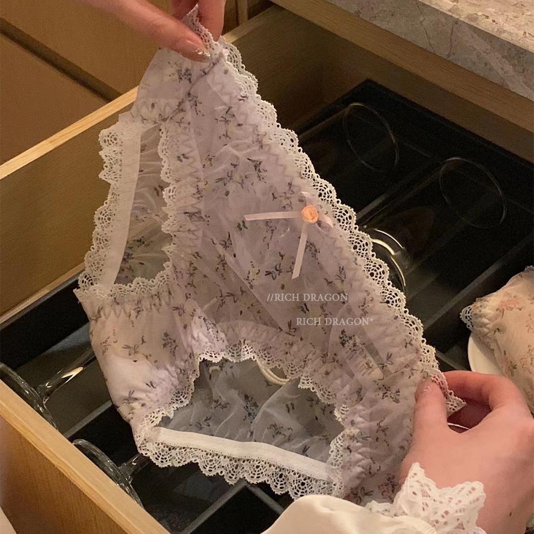 Ropa interior de verano "Verano Pequeño y Sexy" con encaje floral, fresca y de cintura baja, para niñas, de puro algodón en la entrepierna.