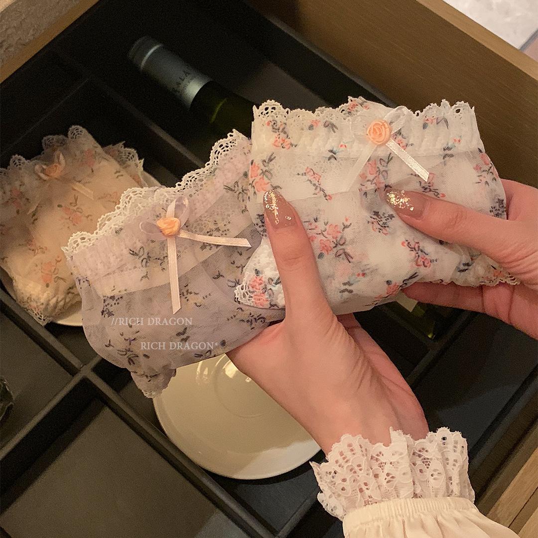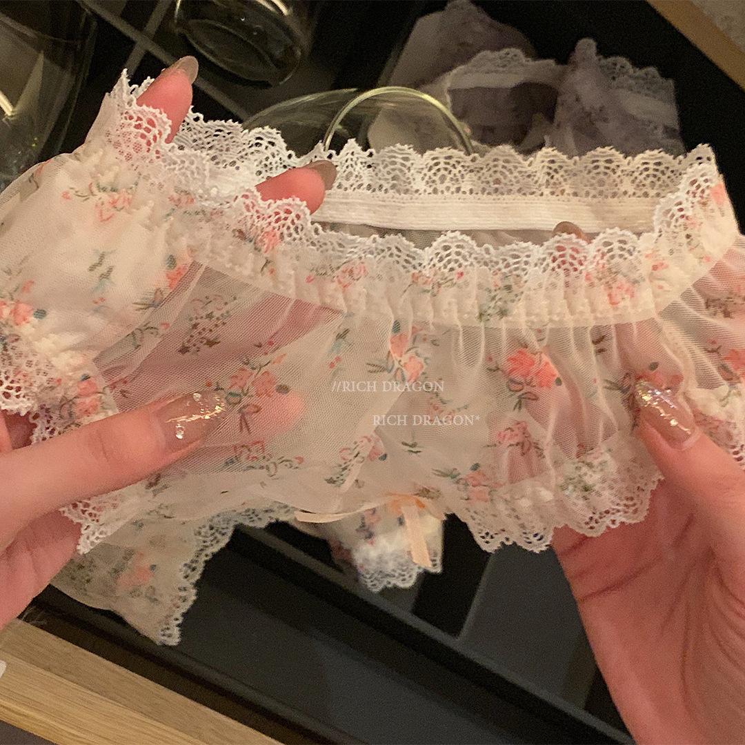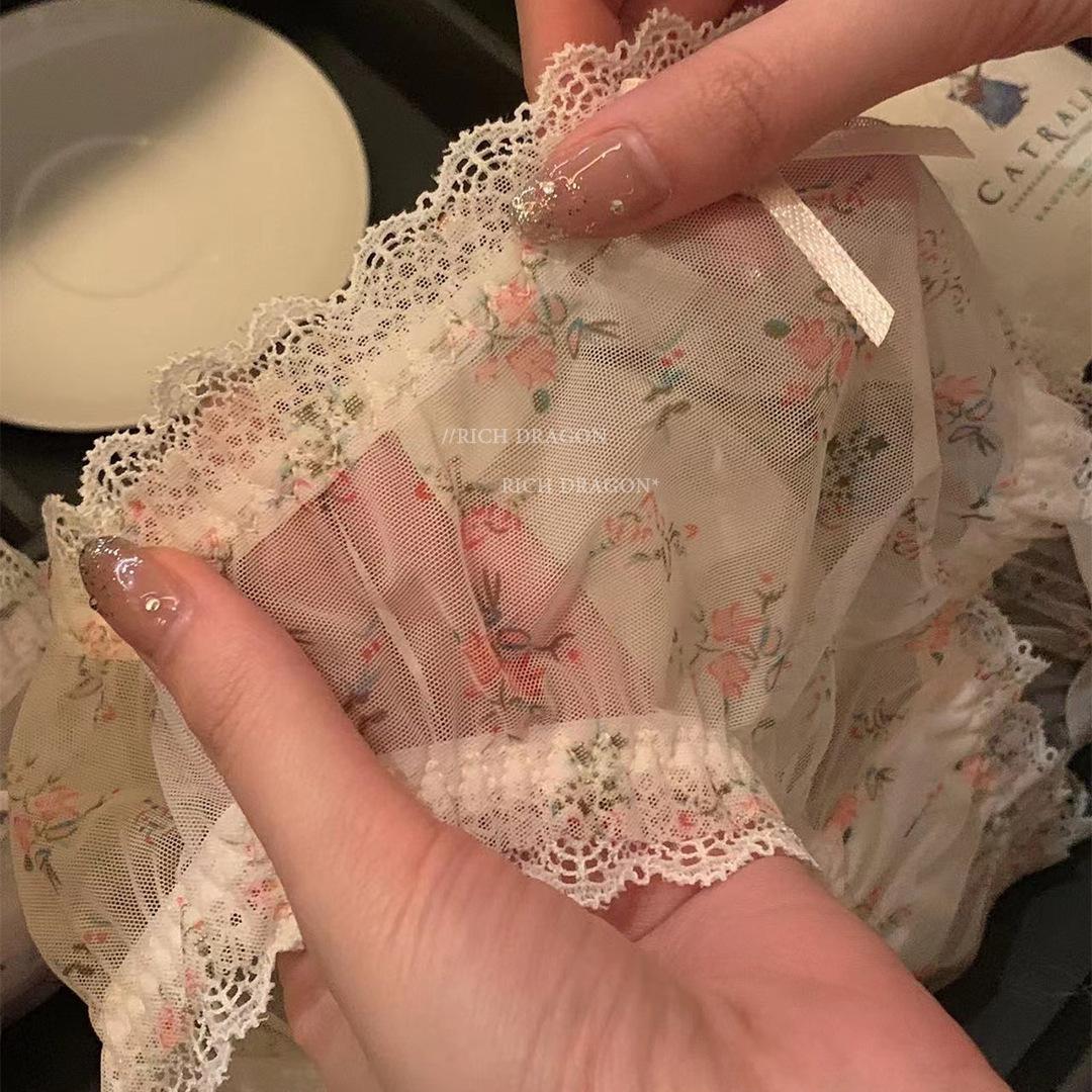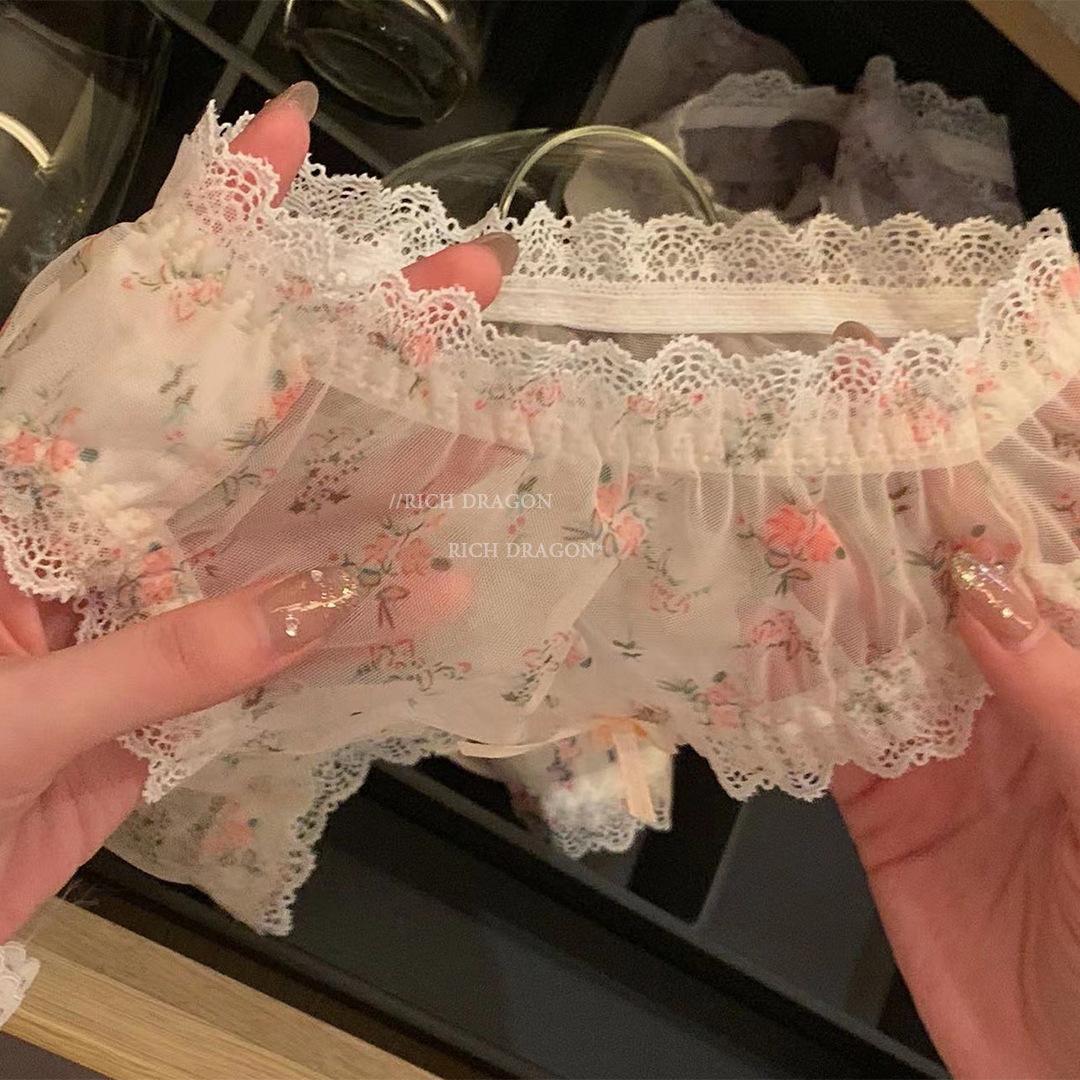 Ropa interior de verano "Verano Pequeño y Sexy" con encaje floral, fresca y de cintura baja, para niñas, de puro algodón en la entrepierna.
