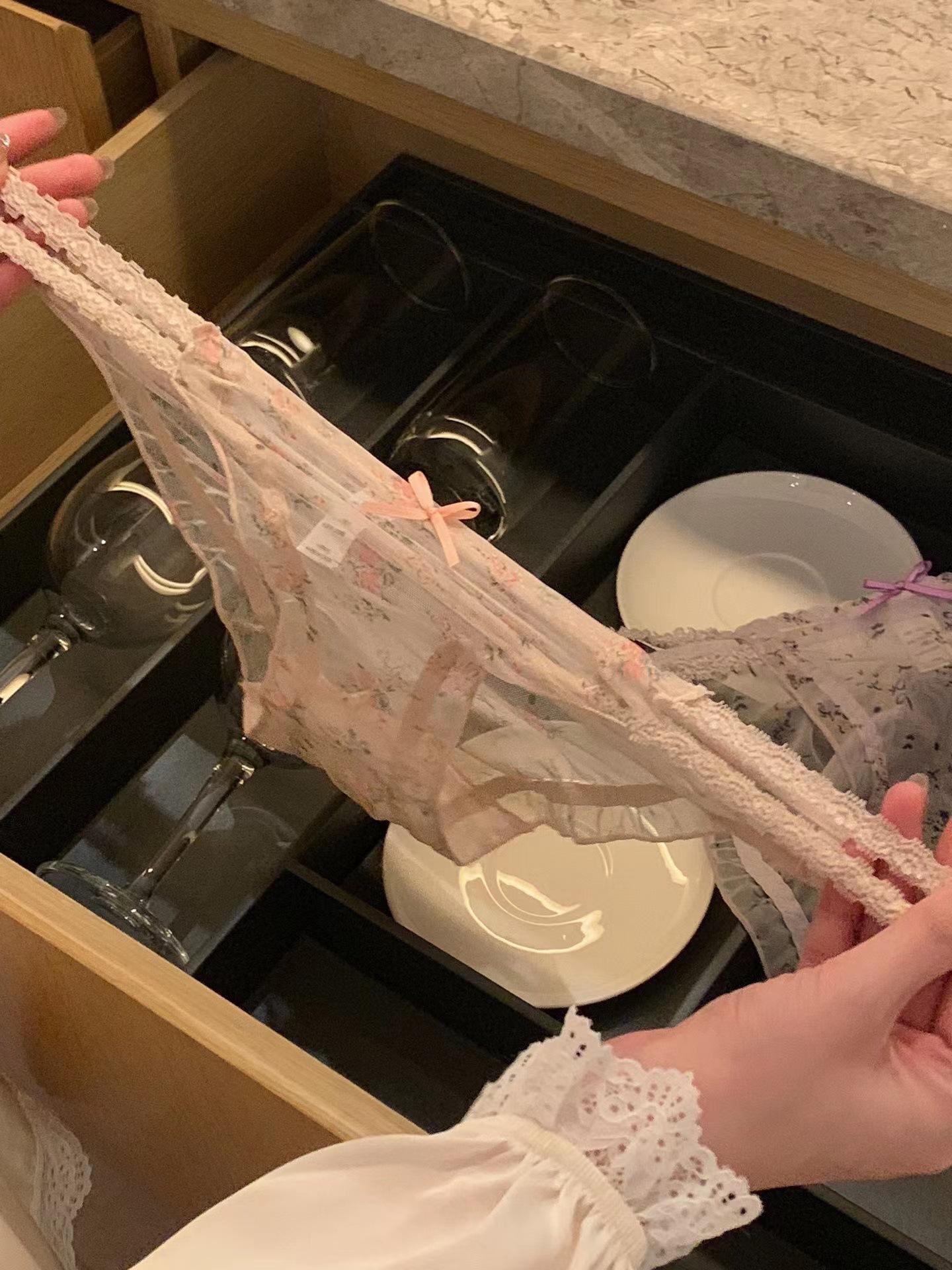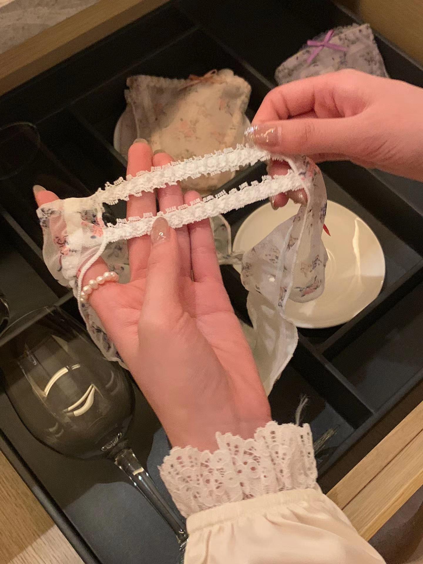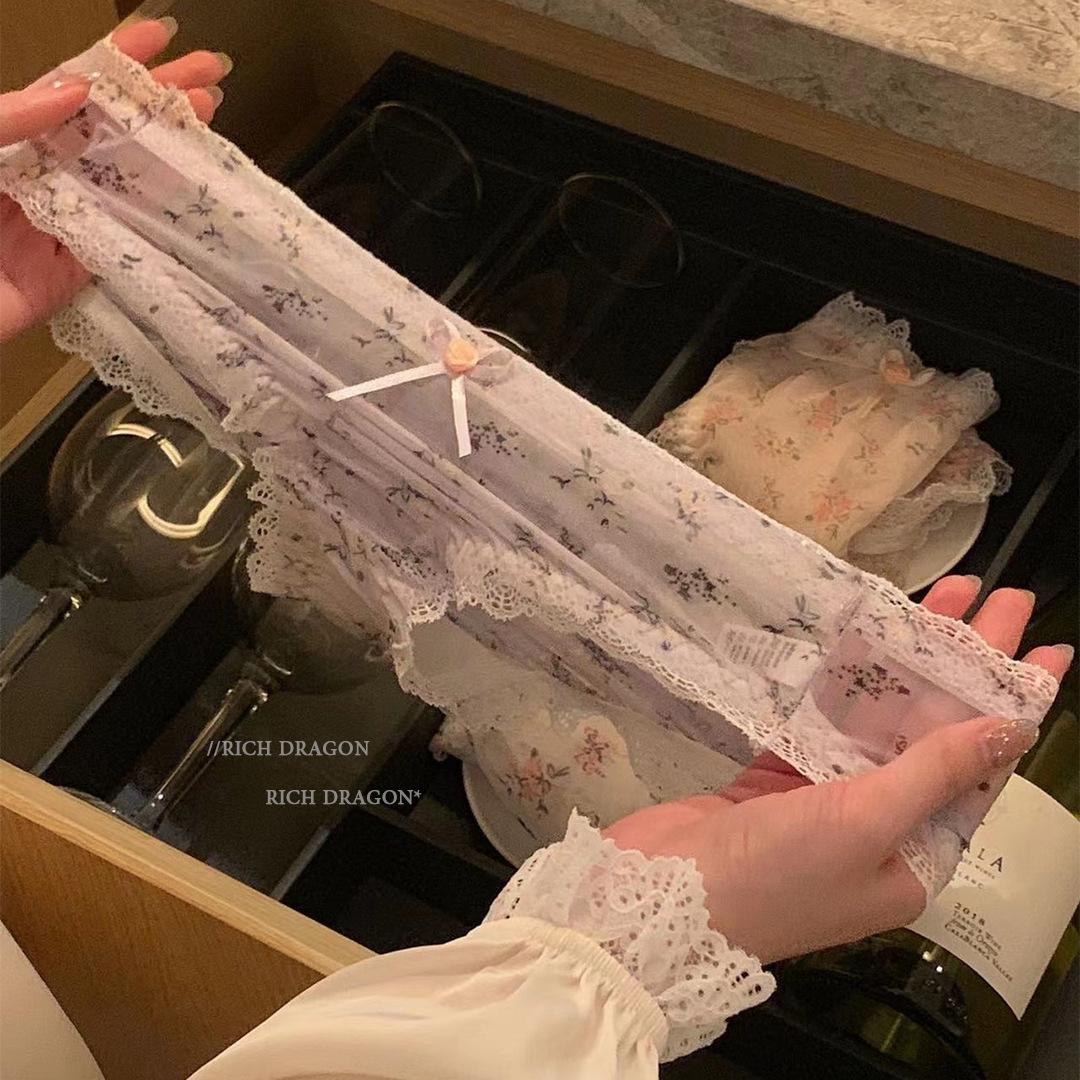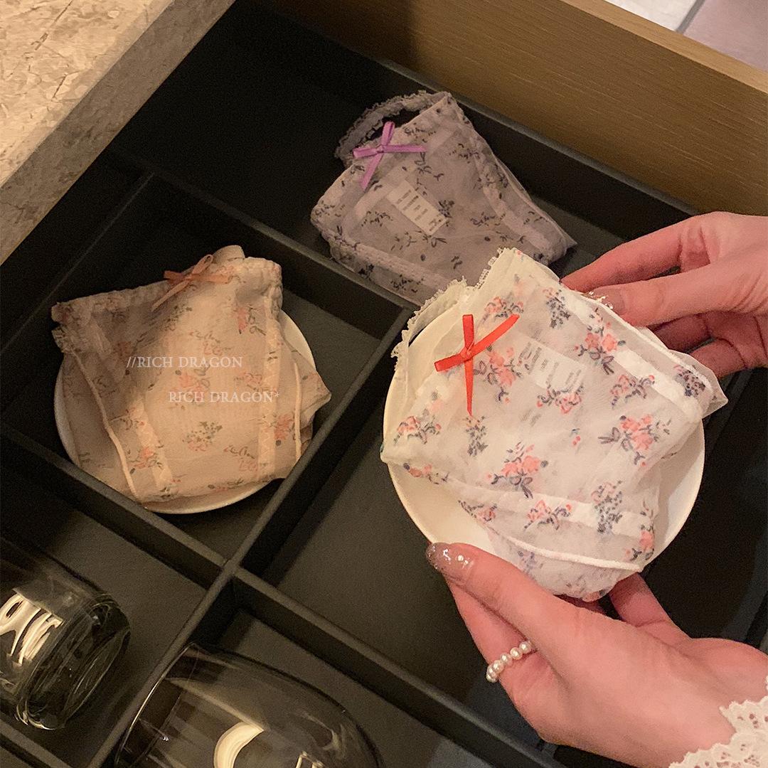 Ropa interior de verano "Verano Pequeño y Sexy" con encaje floral, fresca y de cintura baja, para niñas, de puro algodón en la entrepierna.