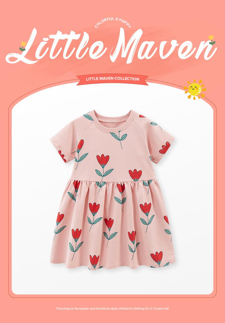 Compra Vestido de Princesa de Verano Little Maven2023 Estilo Europeo y Americano Vestido de Niña de Manga Corta de Algodón Vestido para Niños al por mayor en Joom.pro