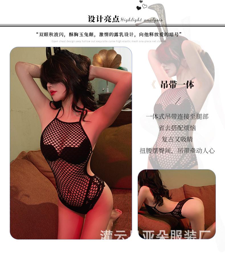 Mono de malla jacquard europeo y americano con abertura en el pecho, lencería sexy, pijama sexy con huecos, tentación, venta al por mayor 3117
