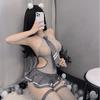 Lencería sexy dulce y fresca, traje de colegiala, uniforme de estudiante hueco, medias de seda, tentación, vestido de malla de una pieza, verano