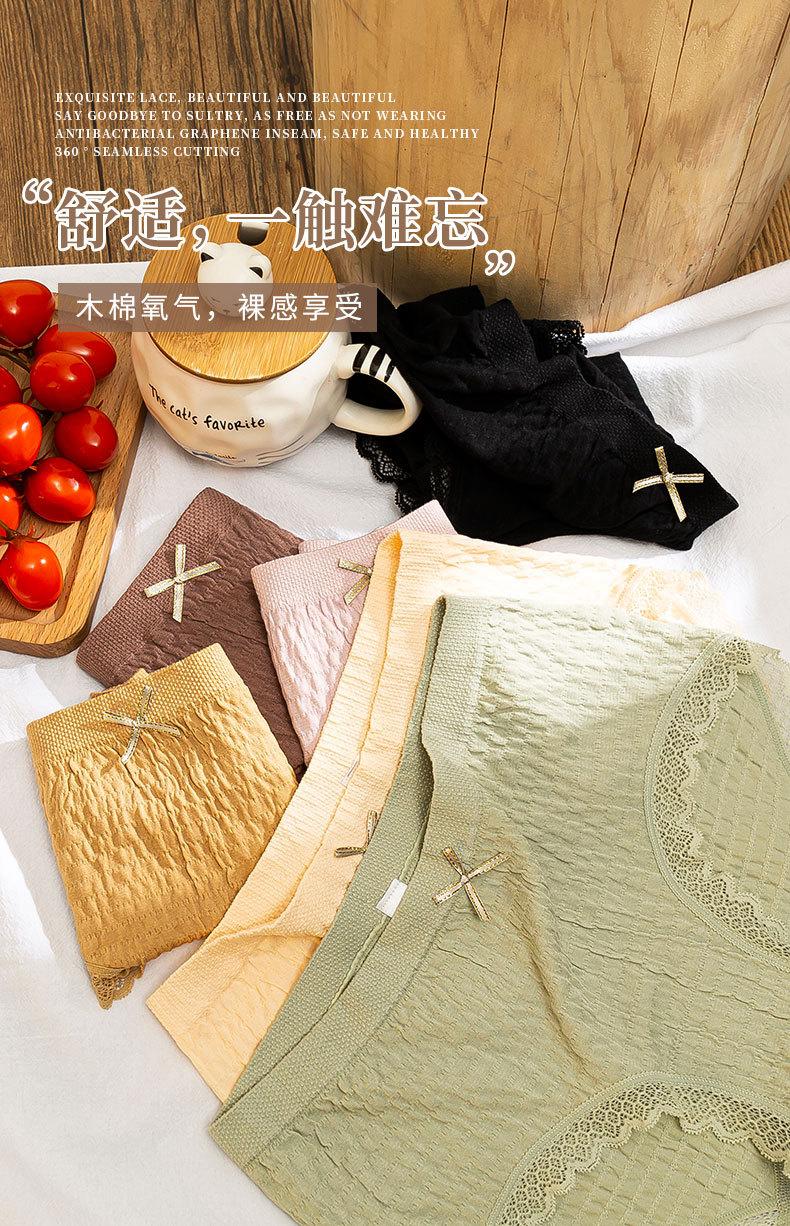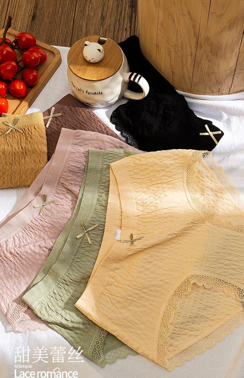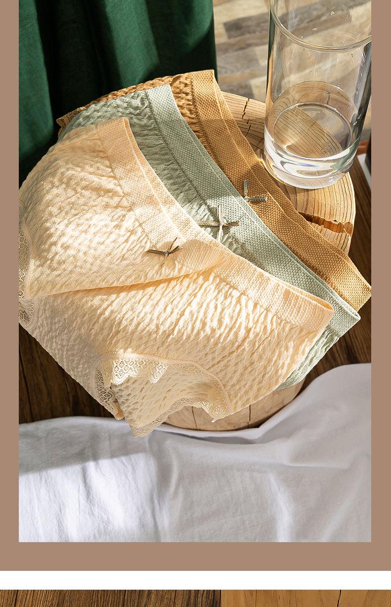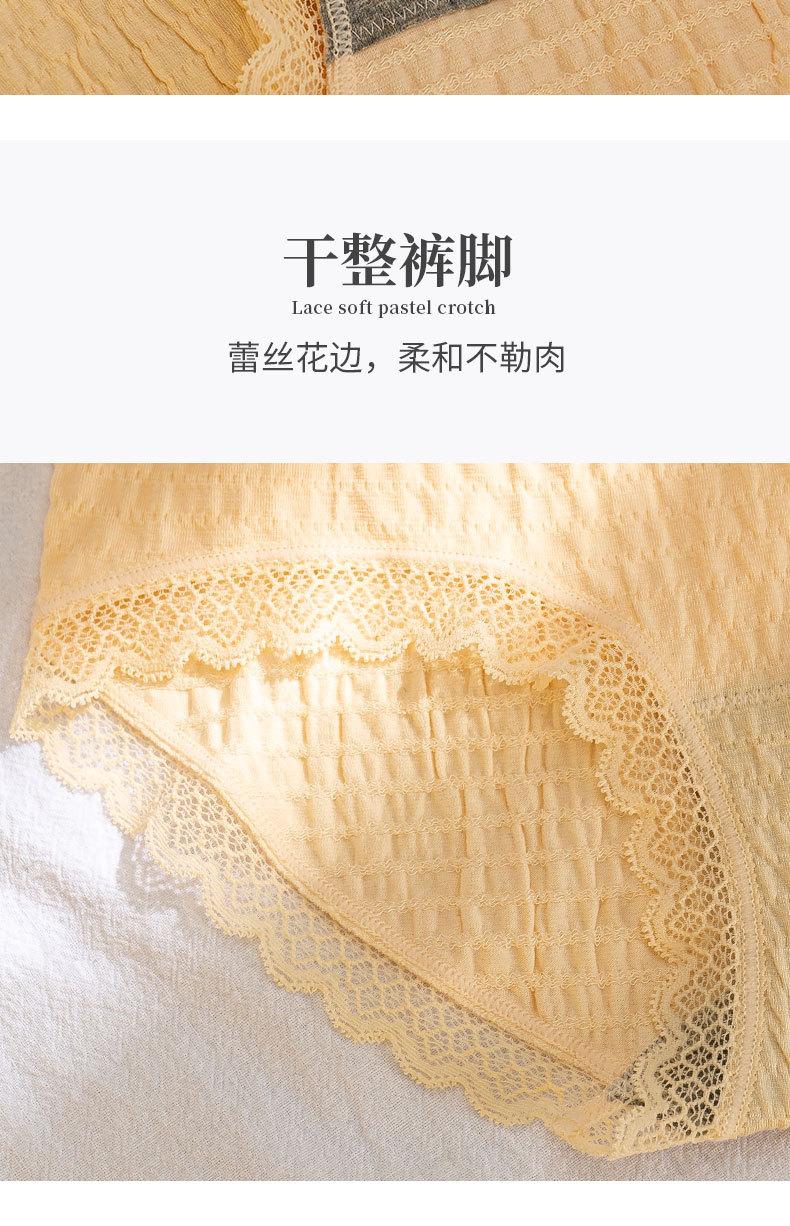 Ropa interior arrugada con burbujas para estudiantes, sin dejar rastro, de cintura media-alta, transpirable, de algodón, con entrepierna y encaje sexy.