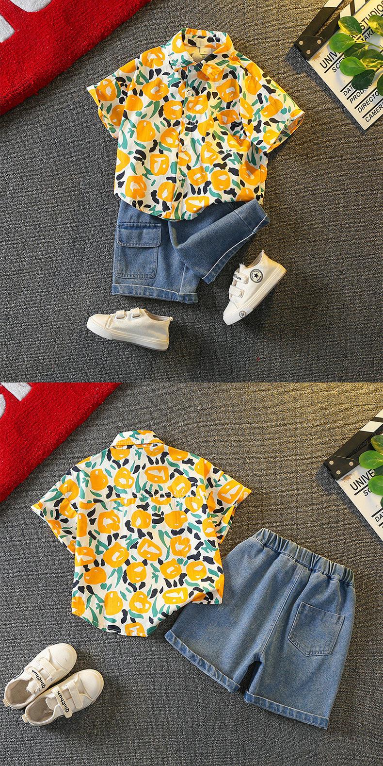 Traje de Verano para Niños 2025 Nuevo Estilo para Niños Pequeños y Medianos Camisas de Verano Ropa Infantil de Moda y Fresca de Manga Corta