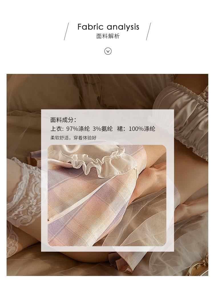 【Textura】Material: Parte superior: 97% poliéster 3% spandex Falda: 100% poliéster