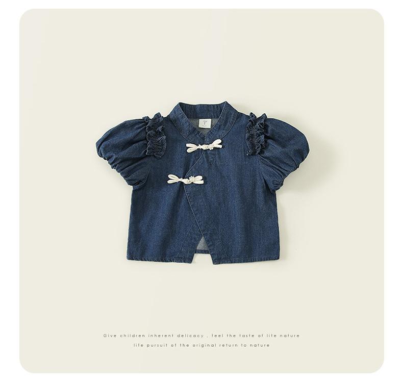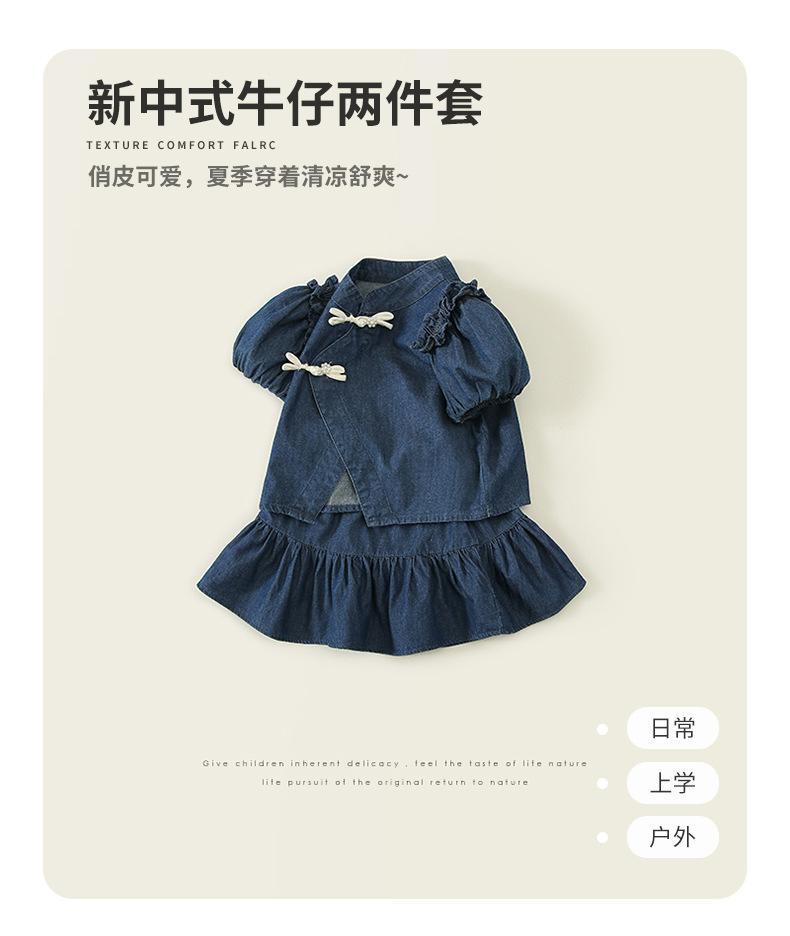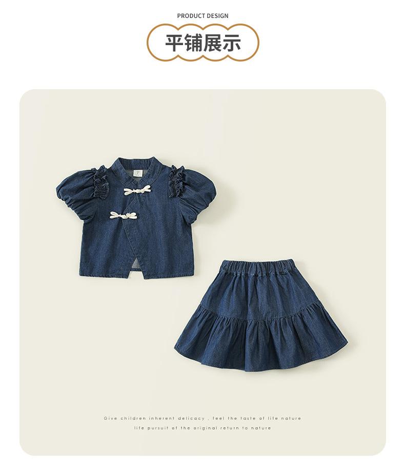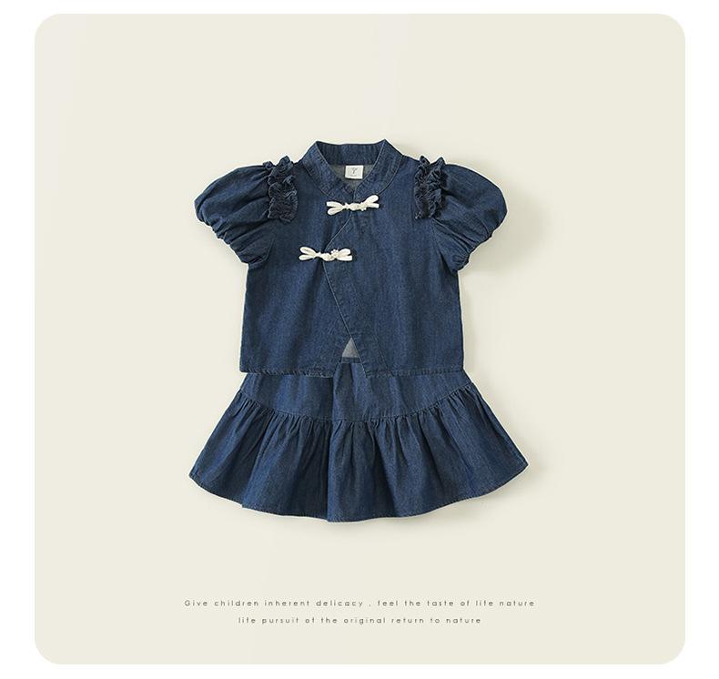 Traje para Niña 2025 Nueva Ropa de Verano Moderna para Bebé Niña Falda de Mezclilla de Manga Corta para Niños Conjunto de Verano de Dos Piezas