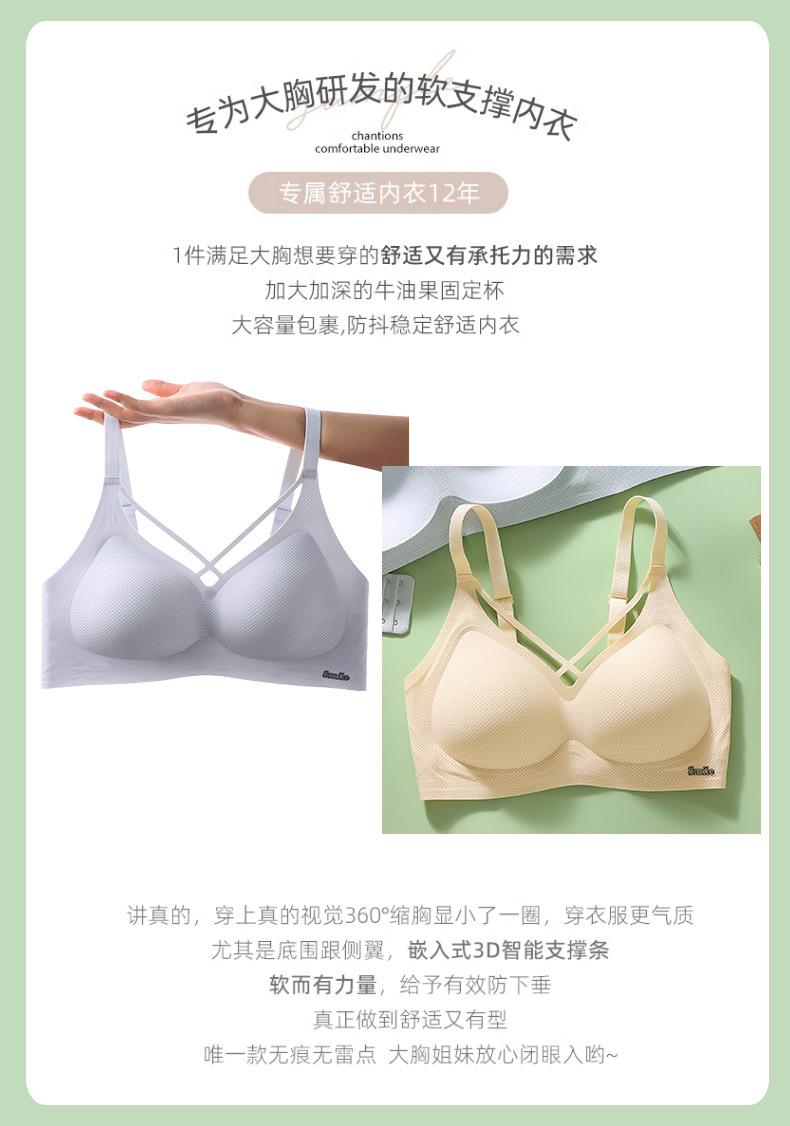 Ropa interior de talla grande sin costuras para mujer, soporte suave, copa fija, sin aro de acero, colección de pecho, sujetador de soporte superior antiexpansión fino