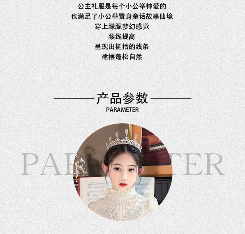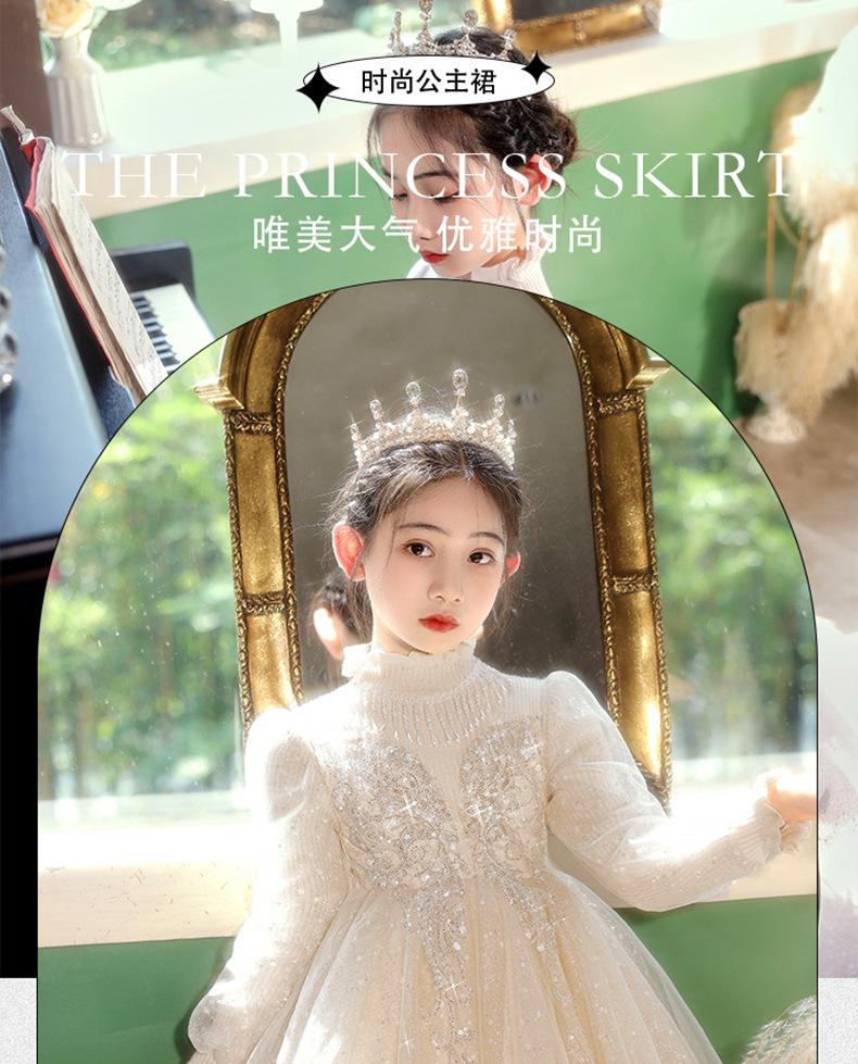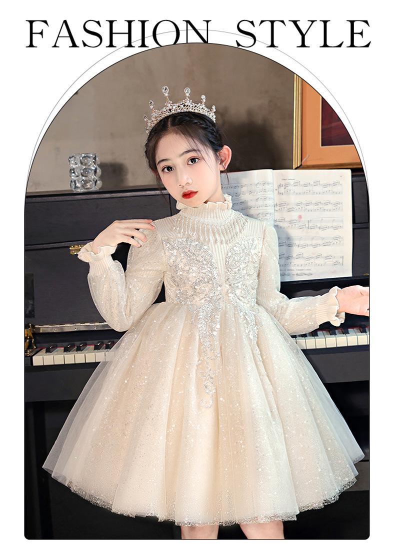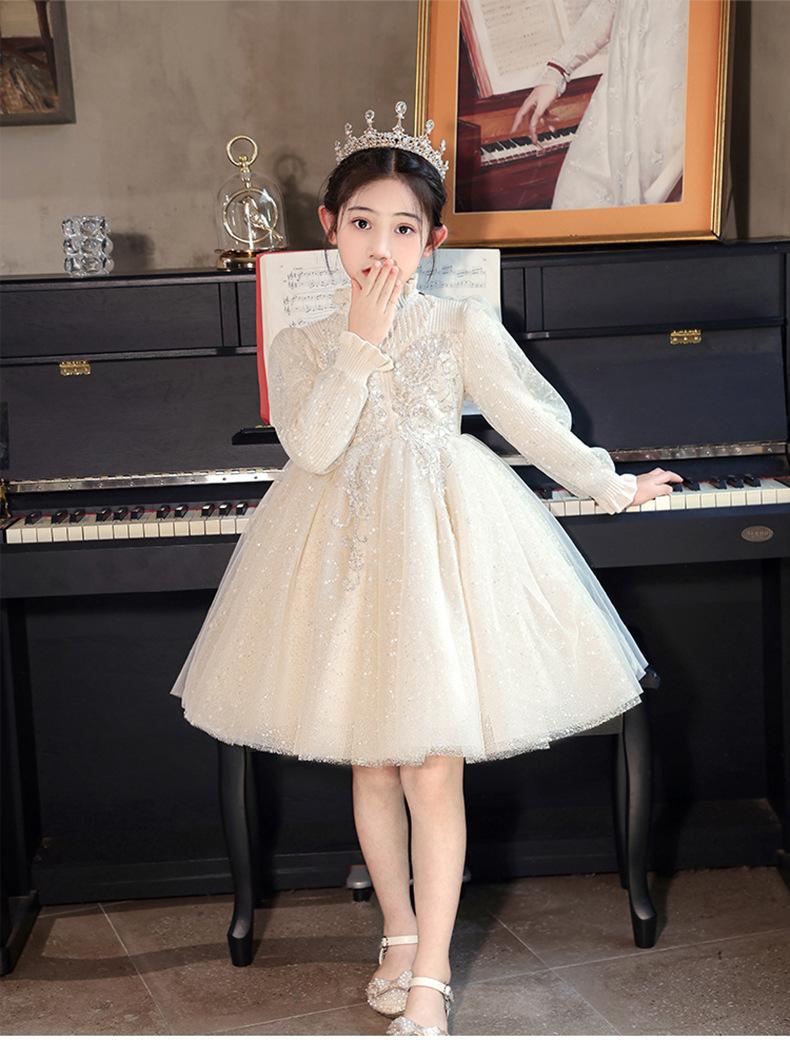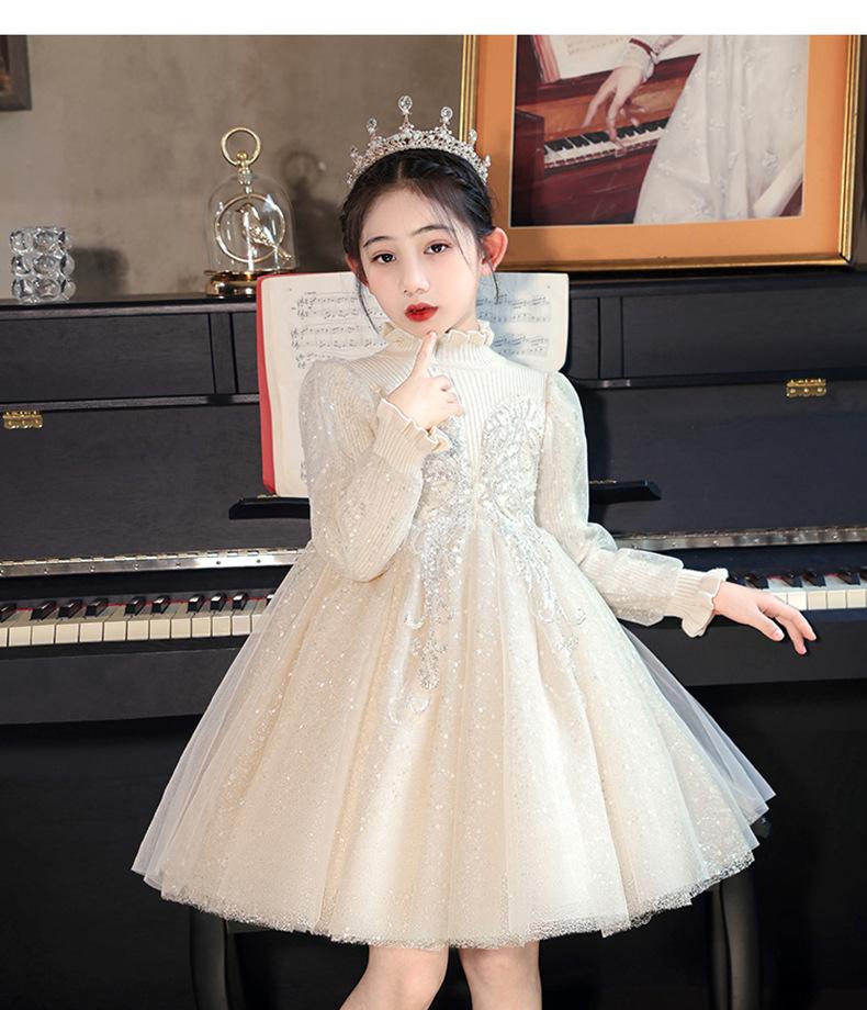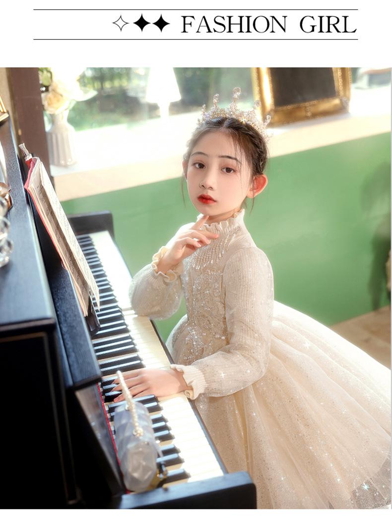 Vestido de princesa elegante para niña, vestido de piano de moda infantil grande, nuevo vestido de niña de las flores de primavera 2025