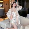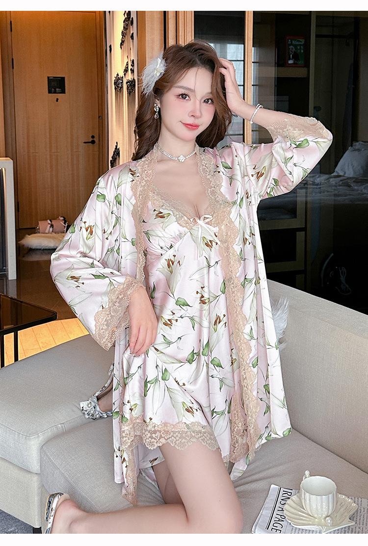 Pijama de verano para mujer, camisón de seda fina de hielo, conjunto de dos piezas con almohadilla para el pecho, vestido con tirantes, traje informal para el hogar