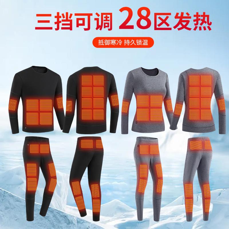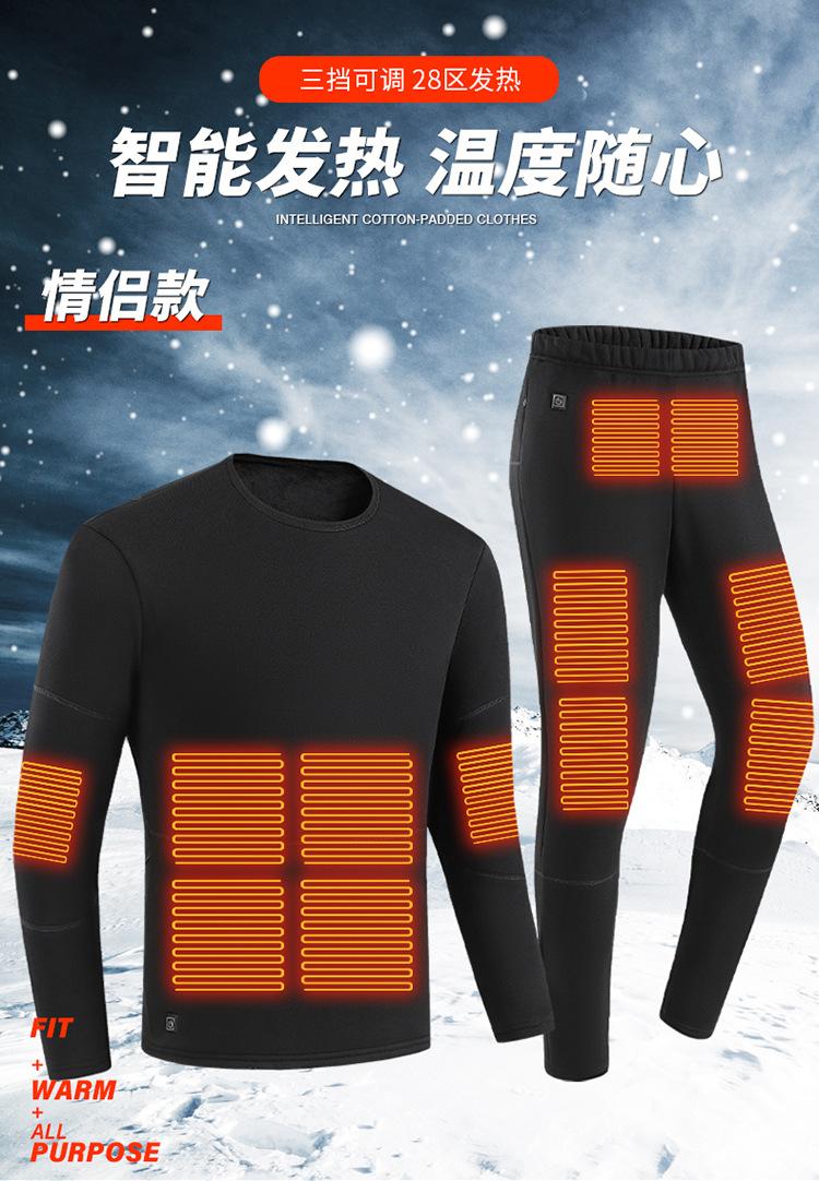 Ropa Interior Térmica Inteligente de Invierno con Forro Polar Engrosado USB para Pareja Traje Eléctrico con Calefacción Ropa para el Hogar Pantalones Cálidos Ropa Interior