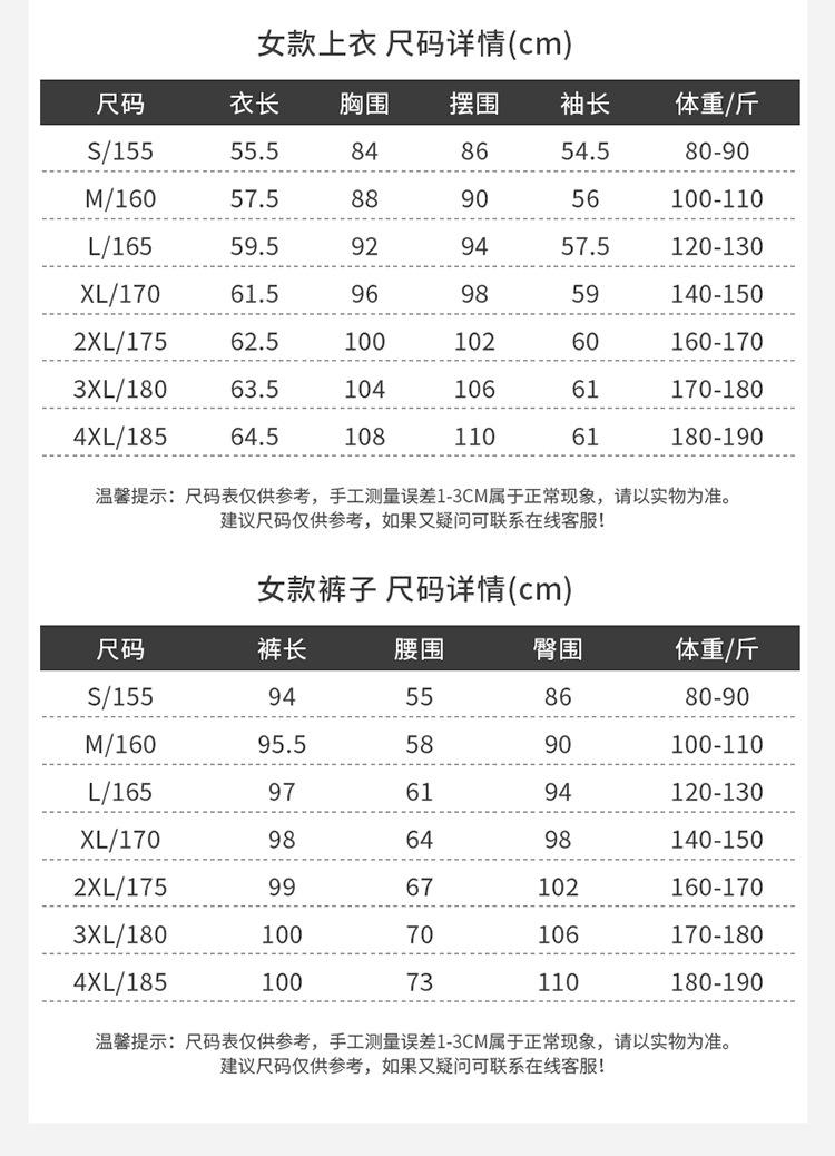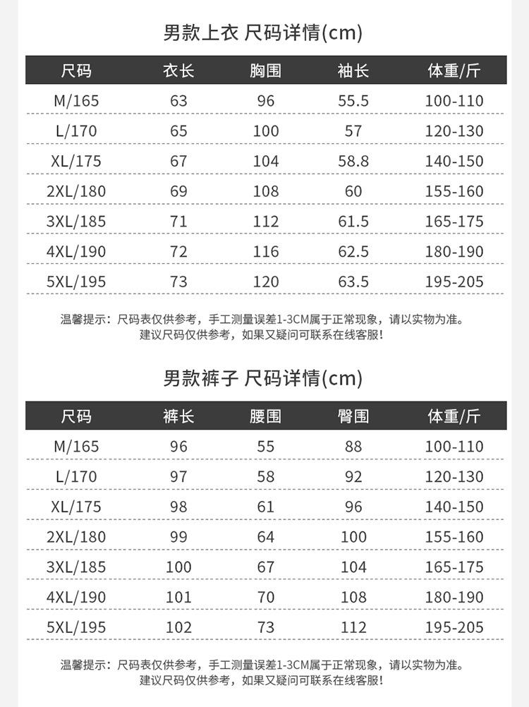 Men's black top + pants, Women's black top + pants, Men's gray top + pants, Women's gray top + pants, Men's bl...