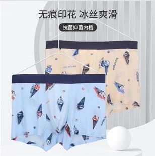 Ropa Interior Nueva de Seda de Hielo para Hombre 2023 Shorts Estampados Personalizados Calzoncillos Bóxer Sin Costuras Transpirables Pantalones de Cuatro Piernas al Por Mayor