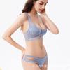 Conjunto de sujetador de encaje sexy para mujer, ropa interior con push-up, fino, gris, talla grande