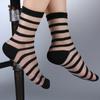 Compra Nuevos calcetines de estilo coreano hasta media pantorrilla de malla transparente a rayas para mujer, calcetines ultrafinos, sexys y transpirables para verano y otoño. al por mayor en Joom.pro