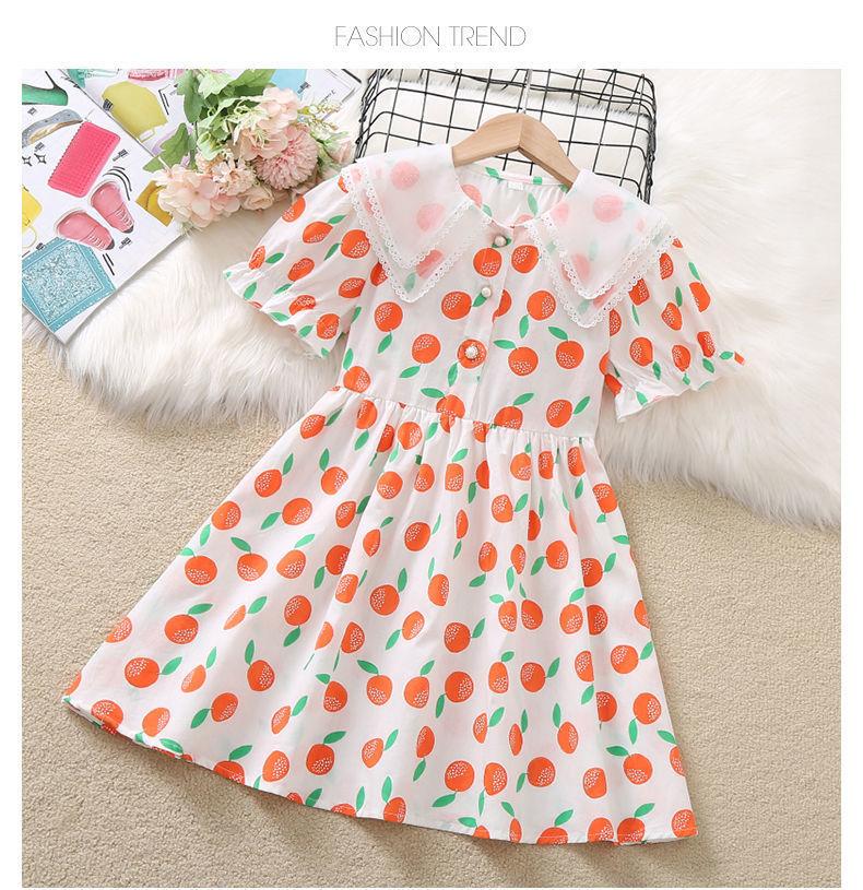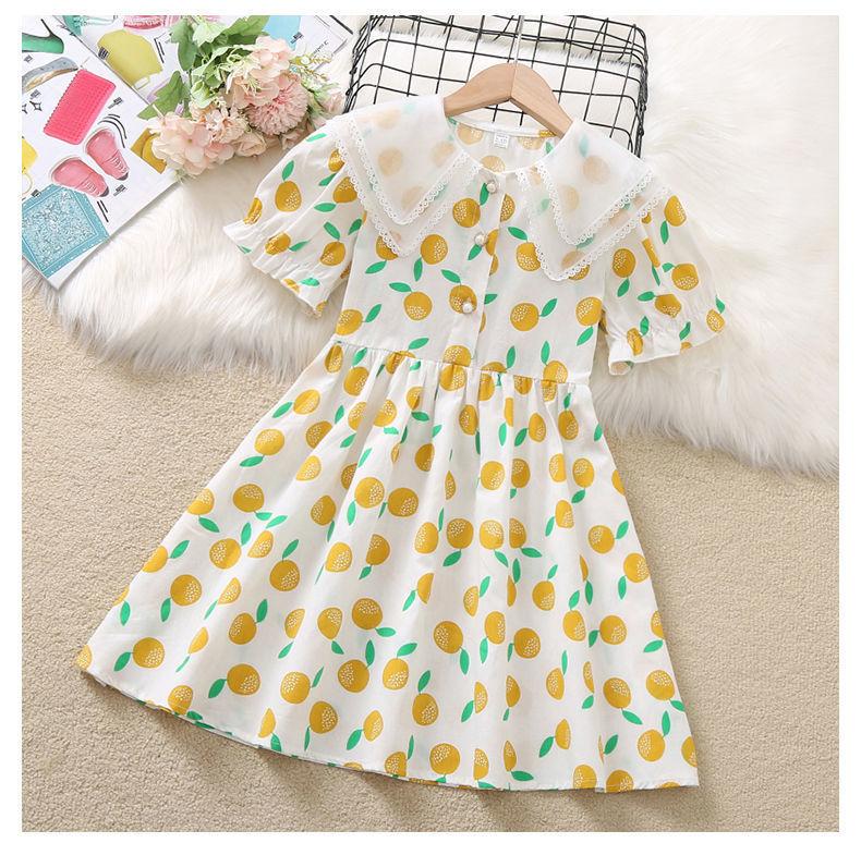 Vestido de verano para niñas, nuevo estilo, estilo princesa, floral, con cuello de muñeca, de princesa