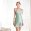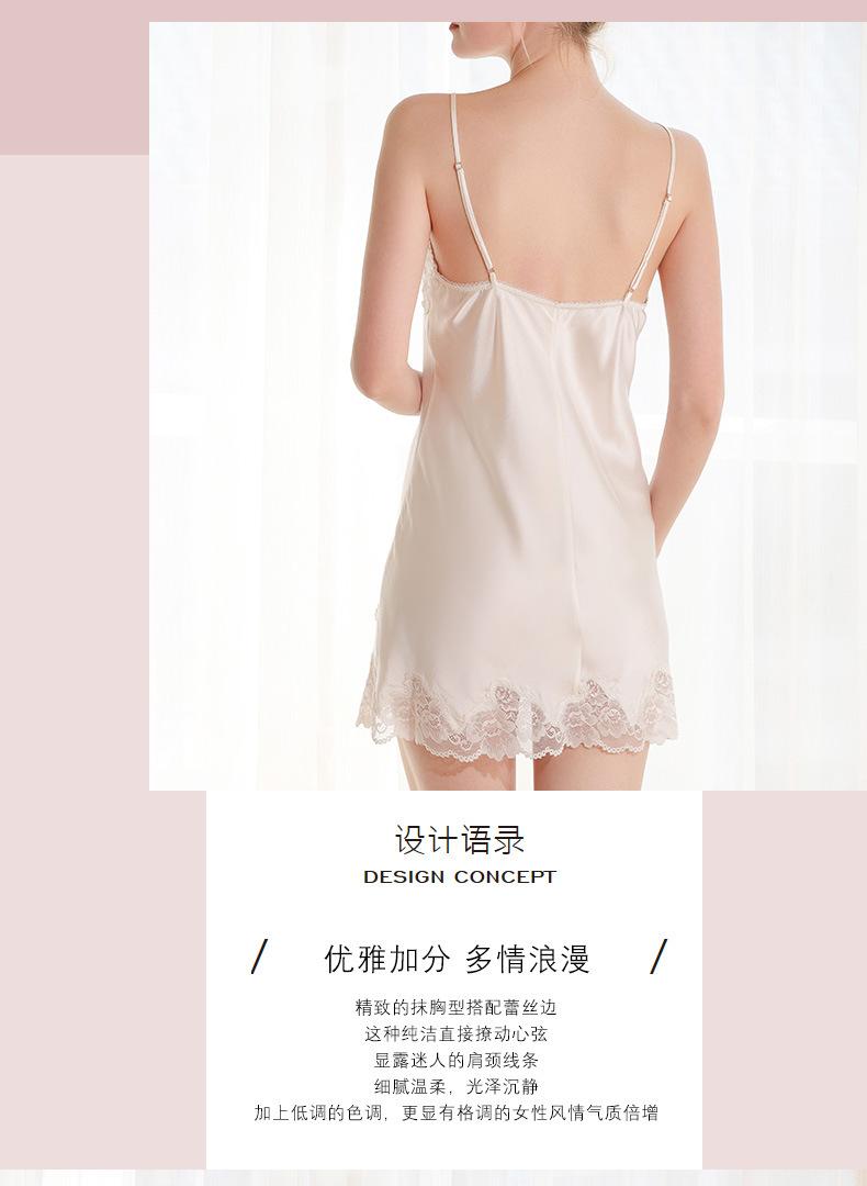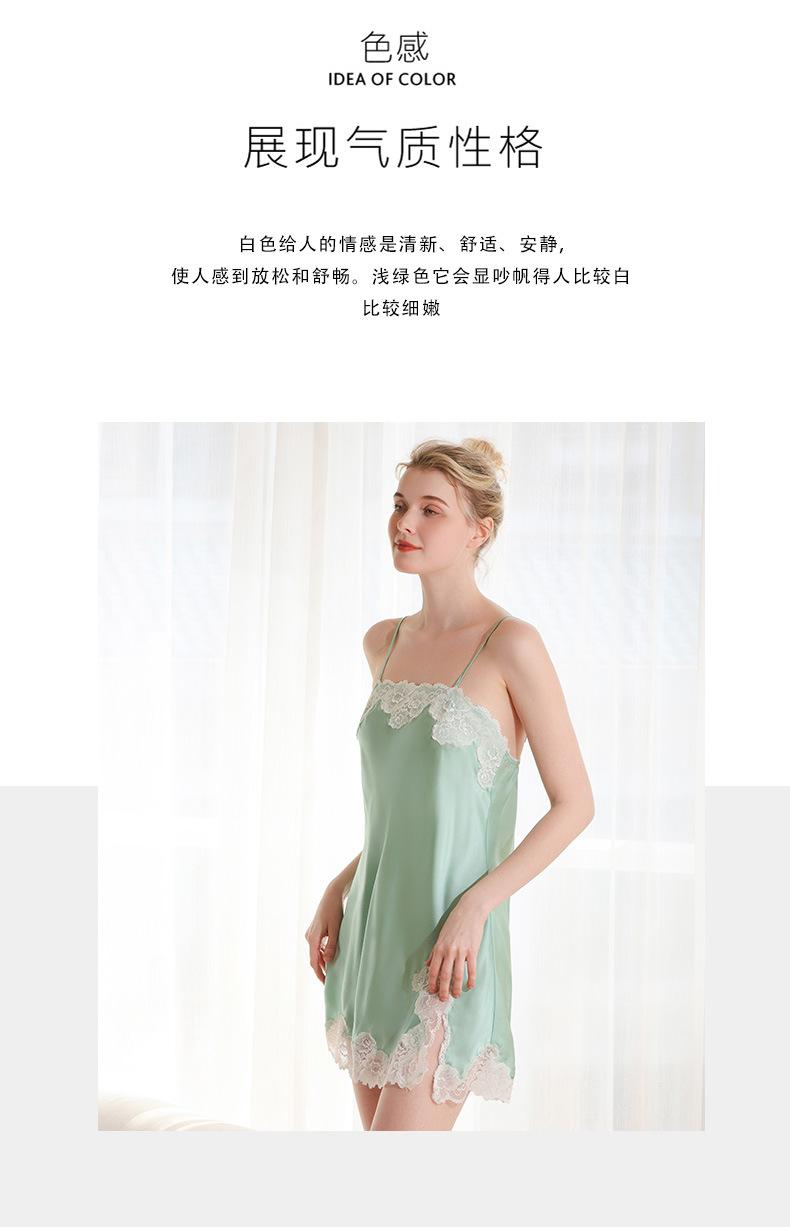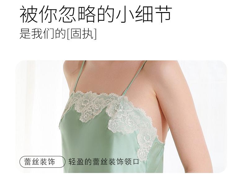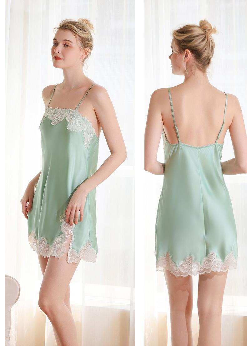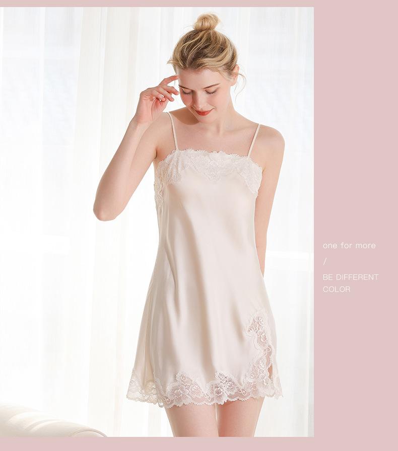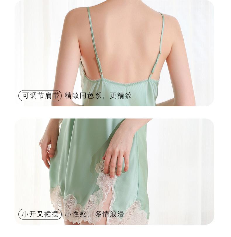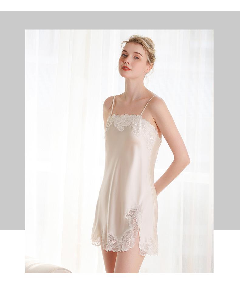Pijama de Seda para Mujer Primavera y Verano Seda de Morera Encaje de Alta Gama Sexy Camisón con Tirantes Delgado y Cómodo Falda Corta Fina