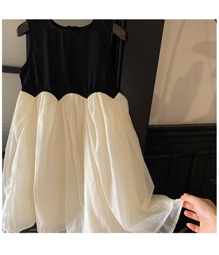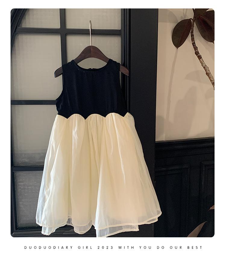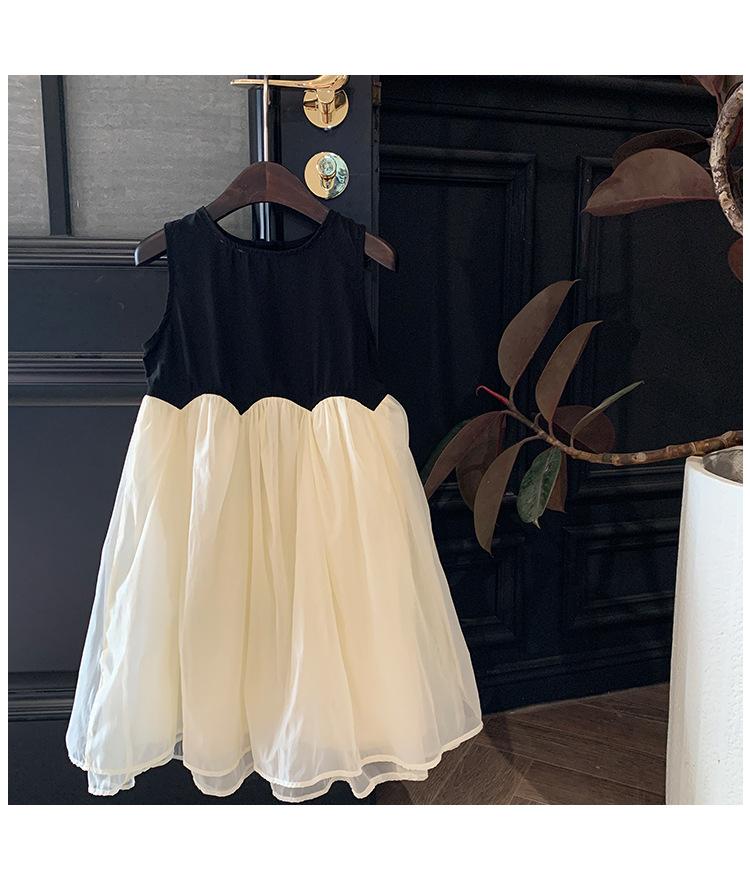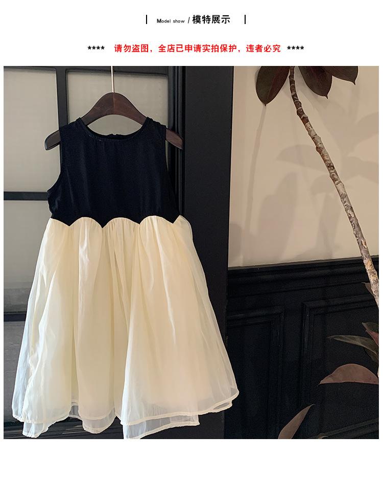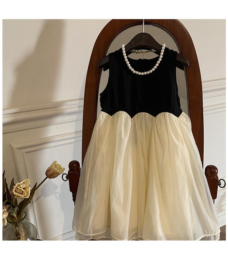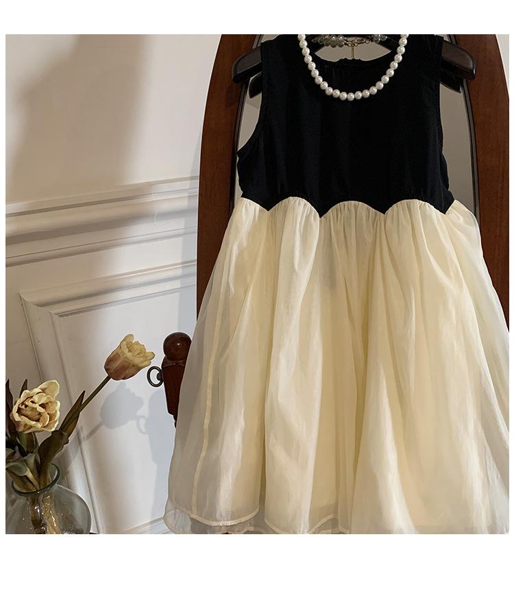 Ropa Infantil Estilo Coreano Niñas 2024 Verano Vestido sin Mangas de Color Contrastante Diseño Francés con Empalme Falda para Niña