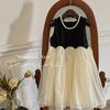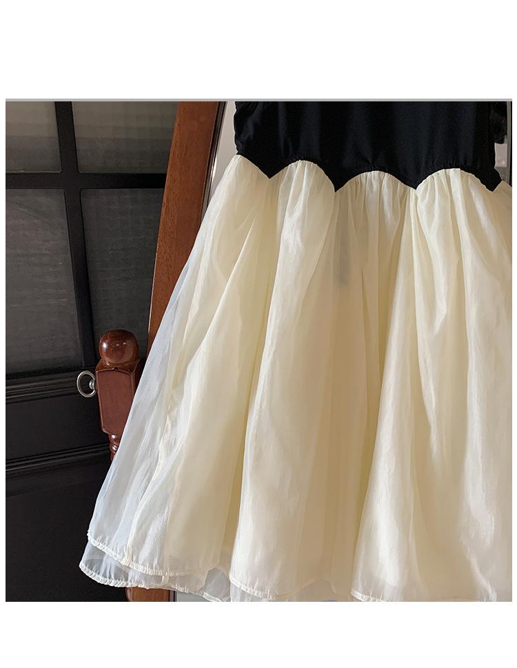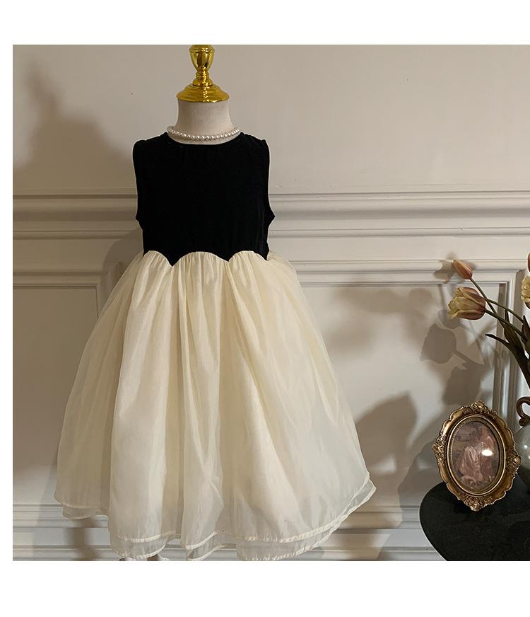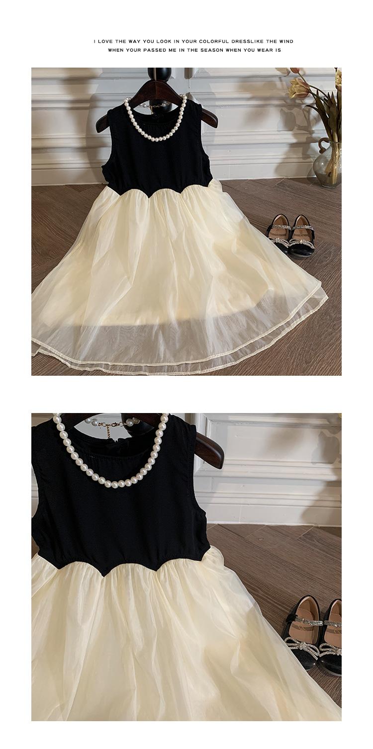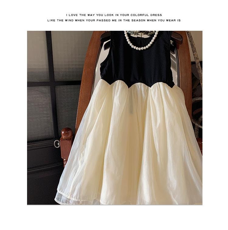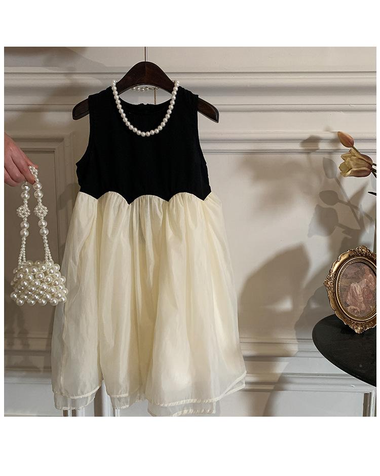 Ropa Infantil Estilo Coreano Niñas 2024 Verano Vestido sin Mangas de Color Contrastante Diseño Francés con Empalme Falda para Niña