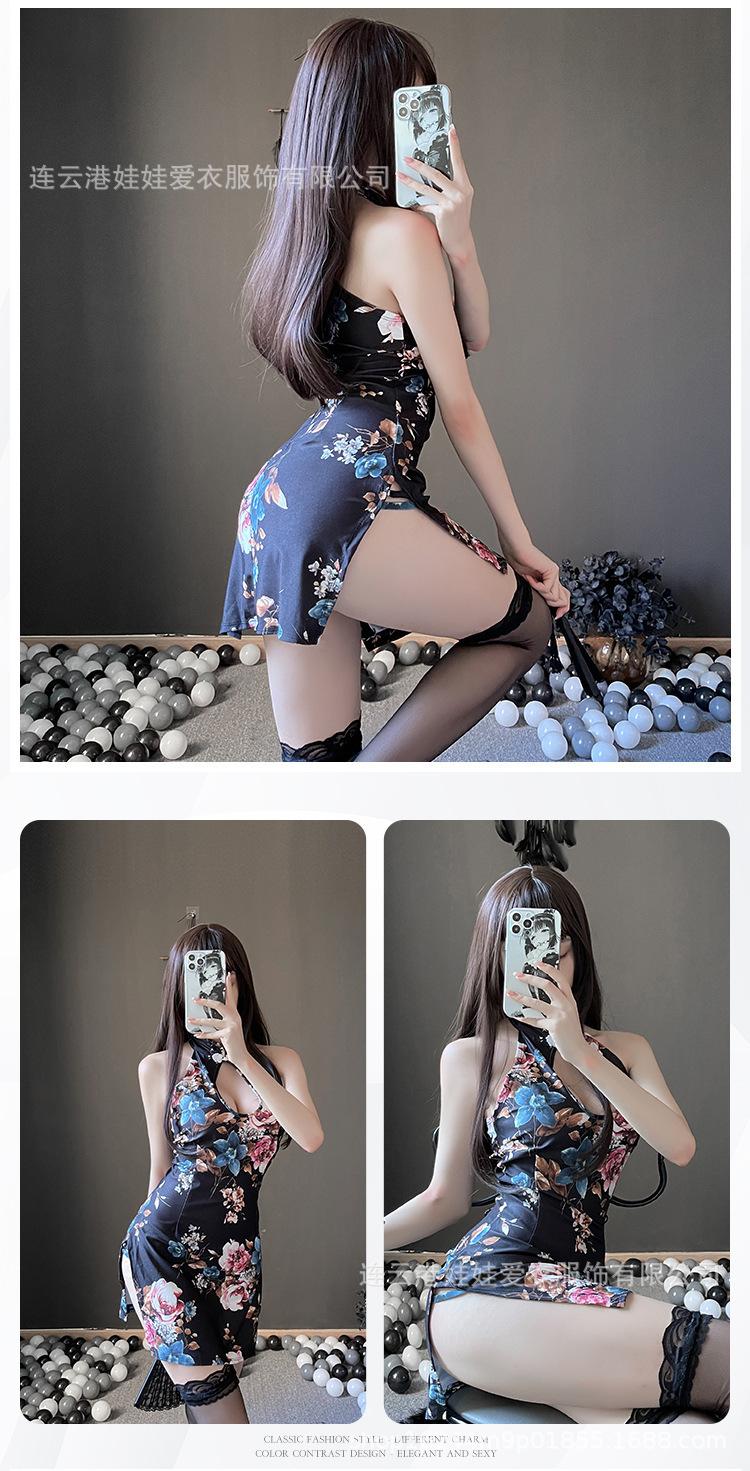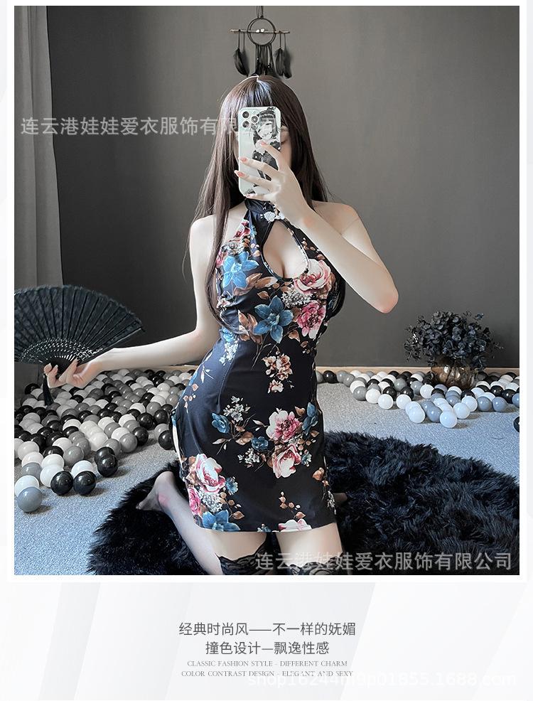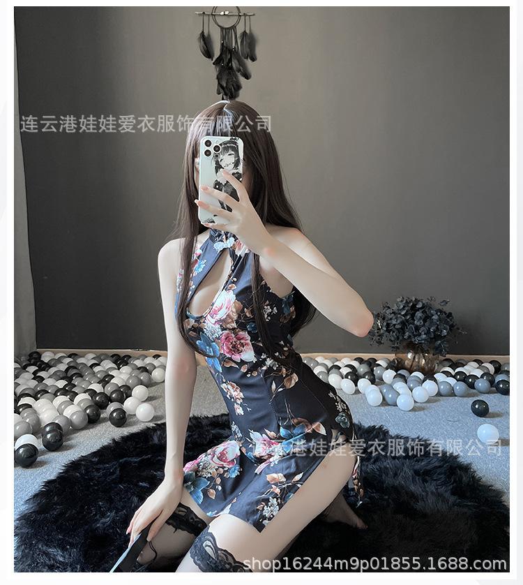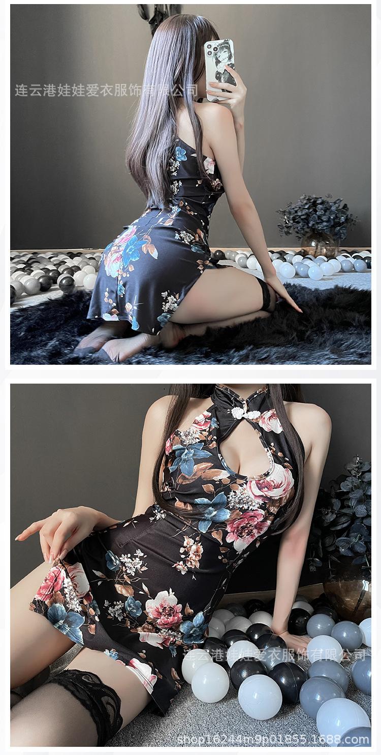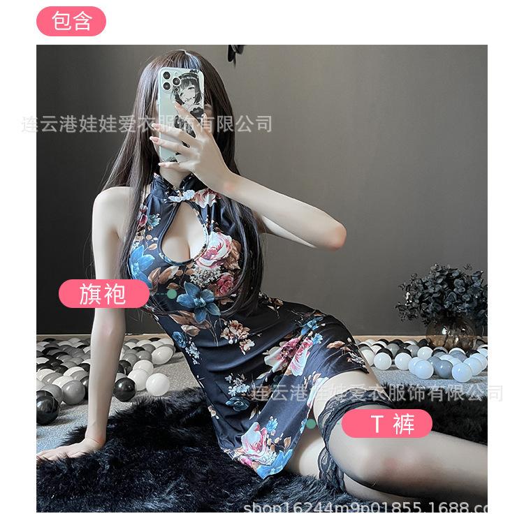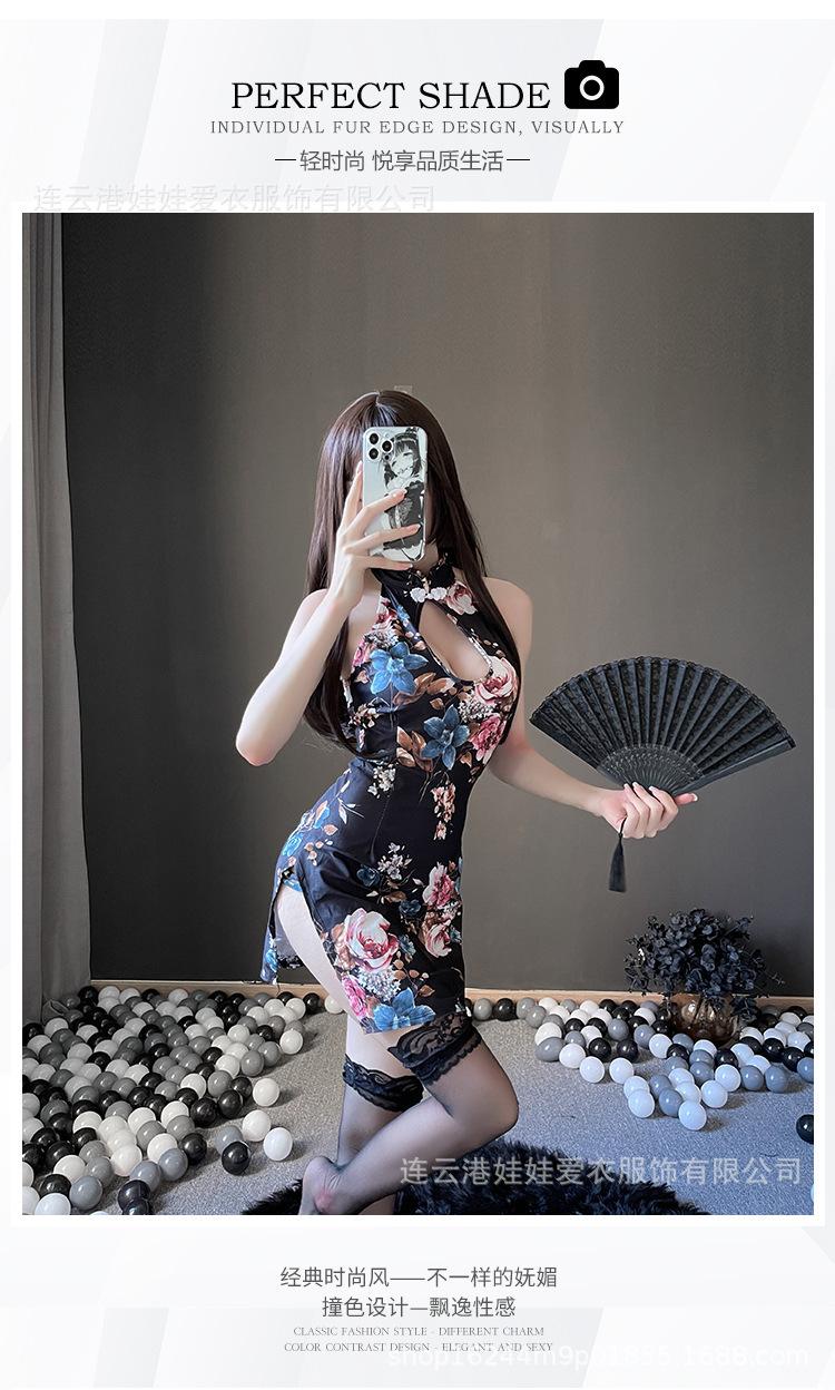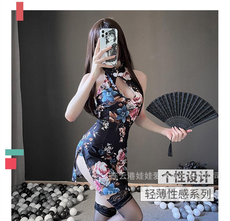 Lencería Sexy para Dormir Cheongsam Talla Grande Tentación Pasión Estilo Antiguo Abertura Alta Sujetador Gratis Conjunto Uniforme de Club Nocturno 55