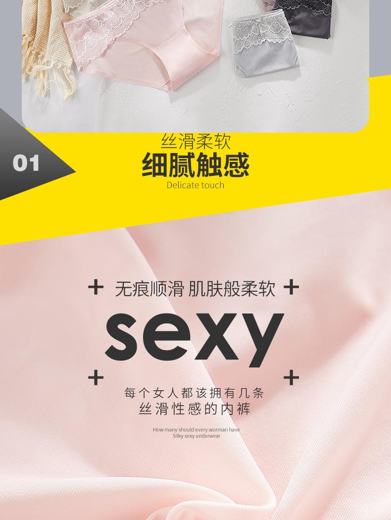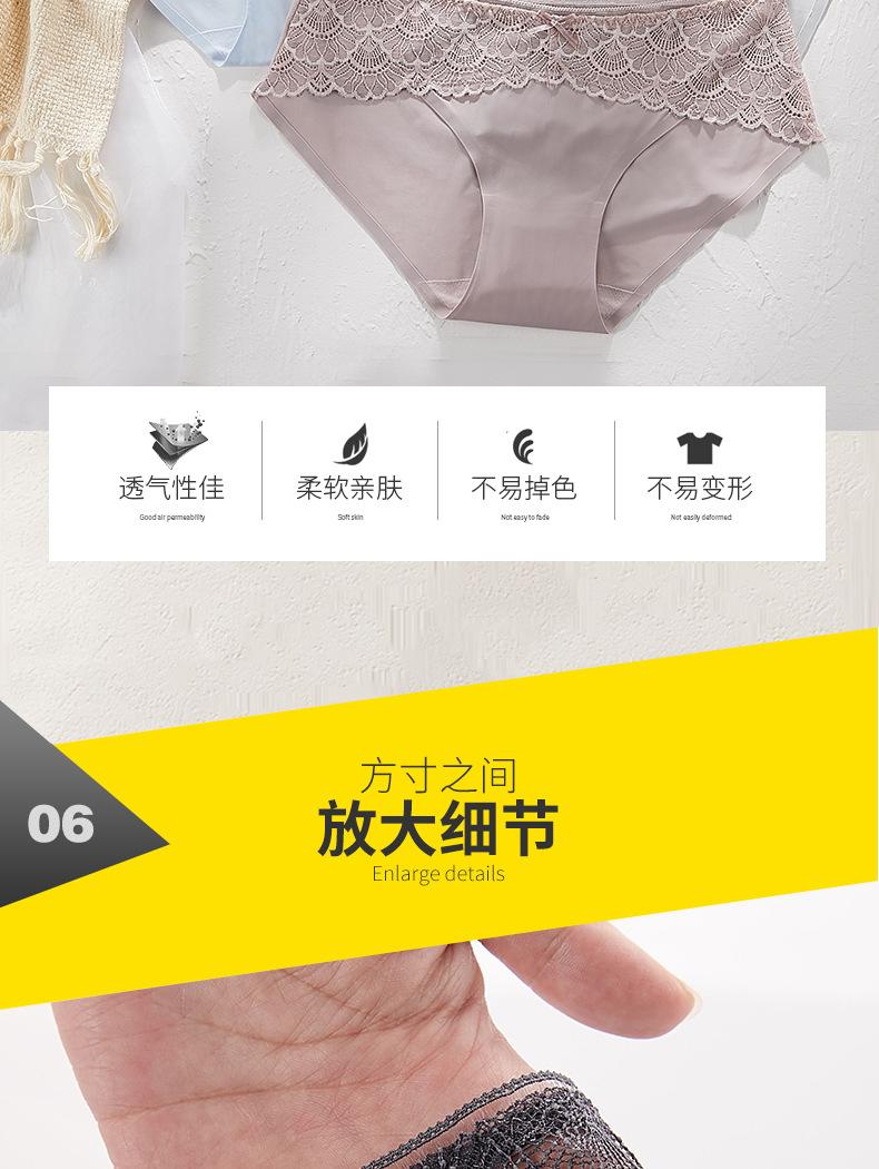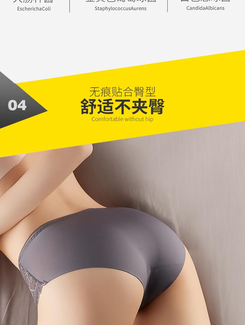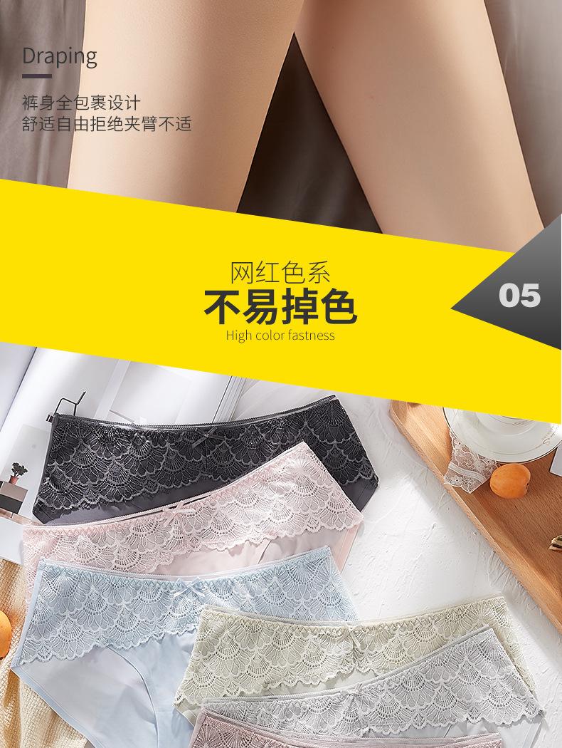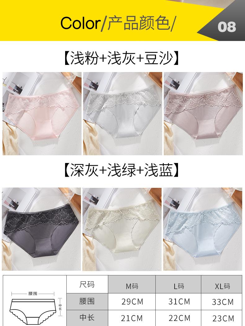 Ropa interior de una pieza de encaje suave y sexy para mujer, de seda de hielo, sin costuras, de cintura media, transpirable, de algodón puro, entrepierna y cadera, calzoncillos de talla grande