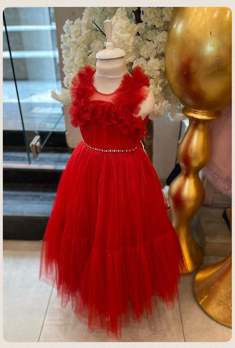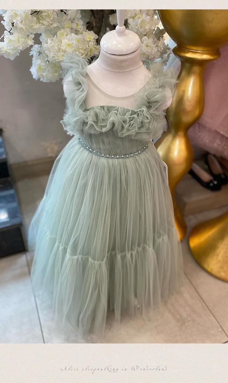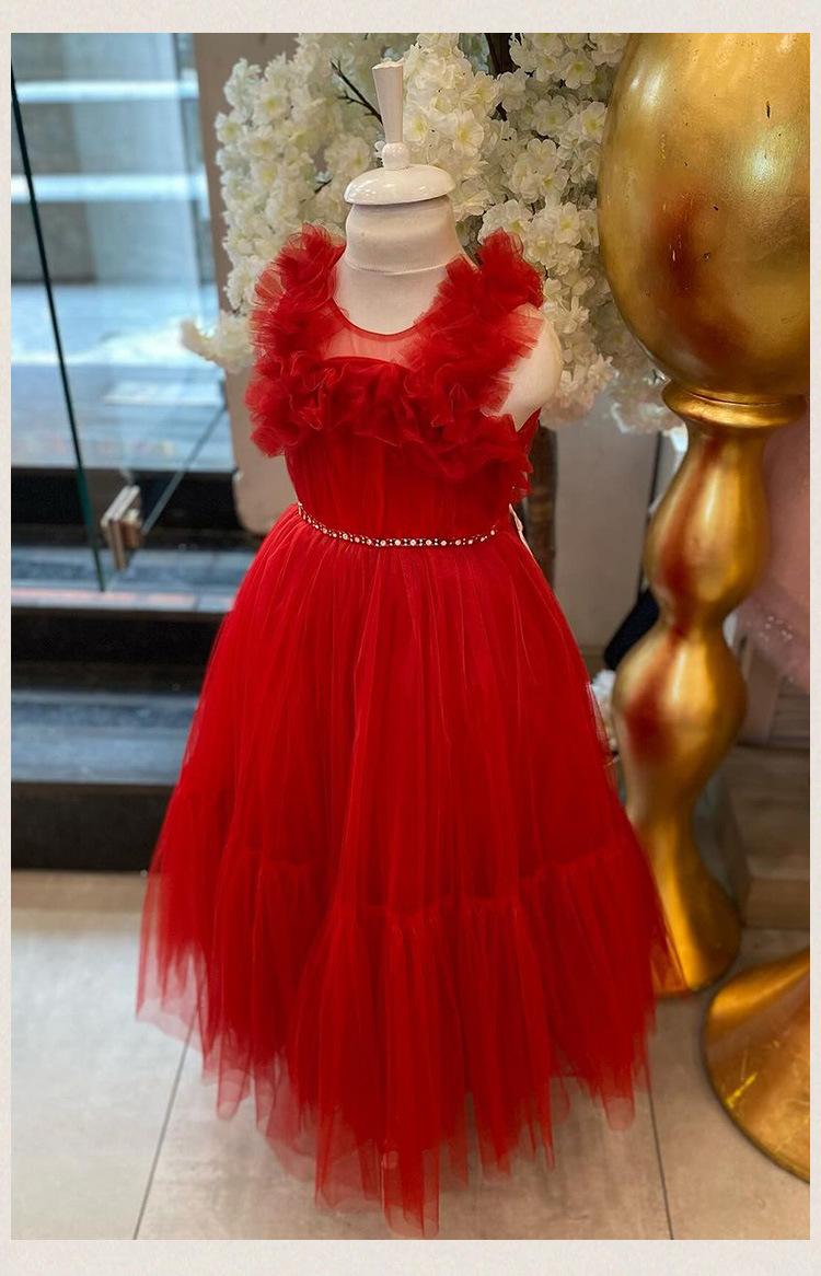 Vestido de princesa, vestido infantil, falda de velo hinchado para niños, malla sin mangas, falda de princesa de Amazon, venta al por mayor