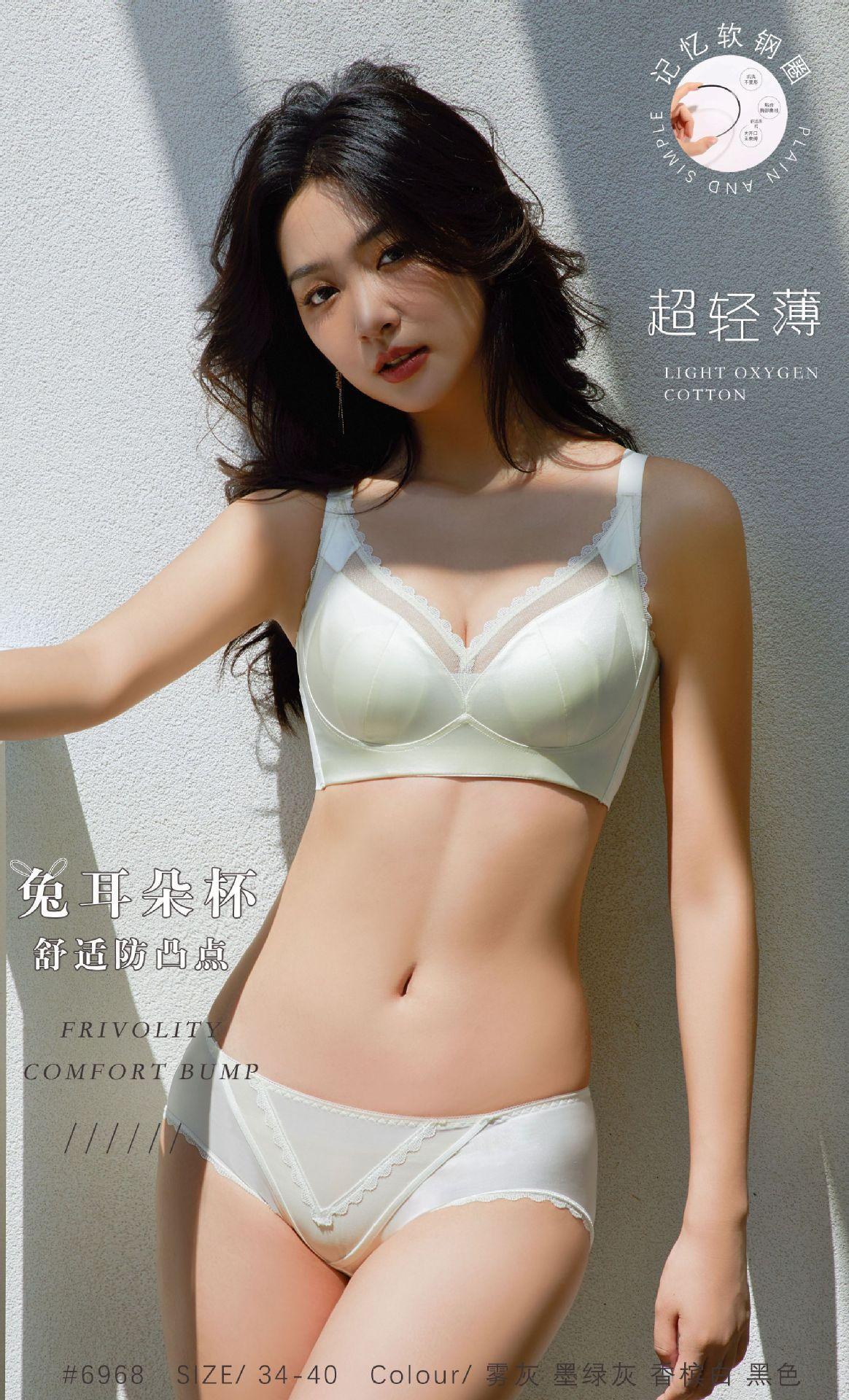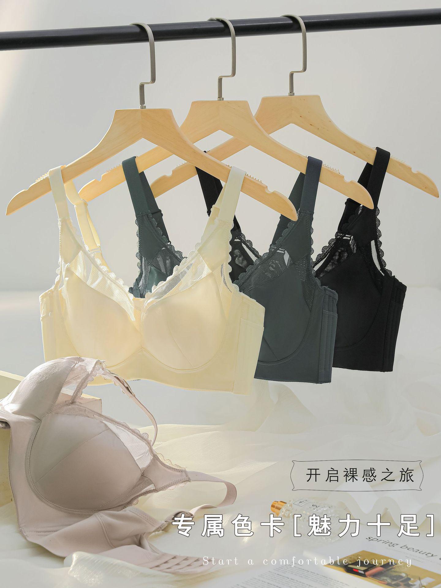 Compra 6968 Sujetador de encaje fino y transpirable estilo francés con copa de cristal, inalámbrico y ajustable, para mujer, con pecho grande y pequeño. al por mayor en Joom.pro